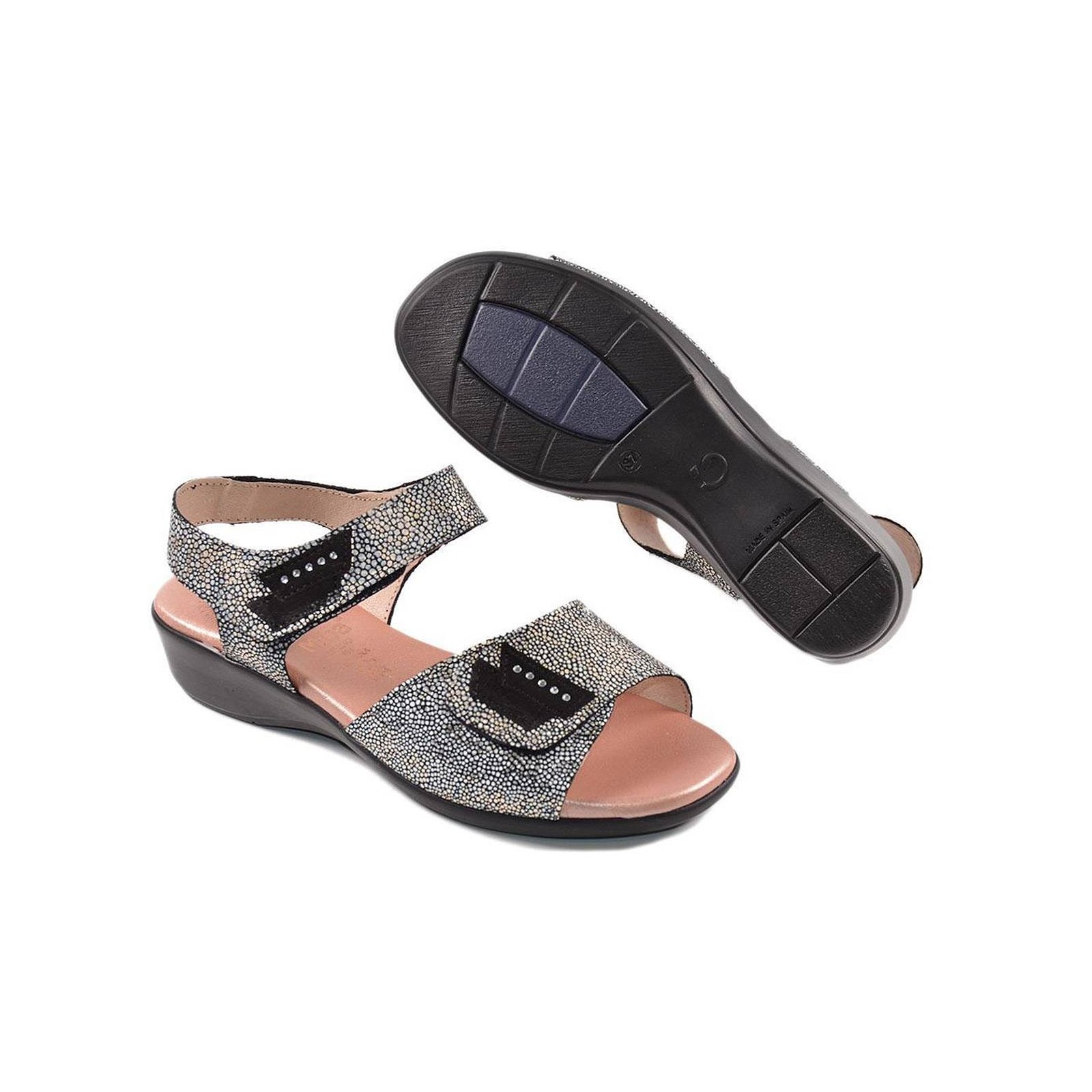 3317 miba. Sandalia material piel, pala y pulsera con cierre de velcro ajustable y forro de piel. Planta piel confortable y piso poliuretano con antideslizante. Ideal para pies delicados.