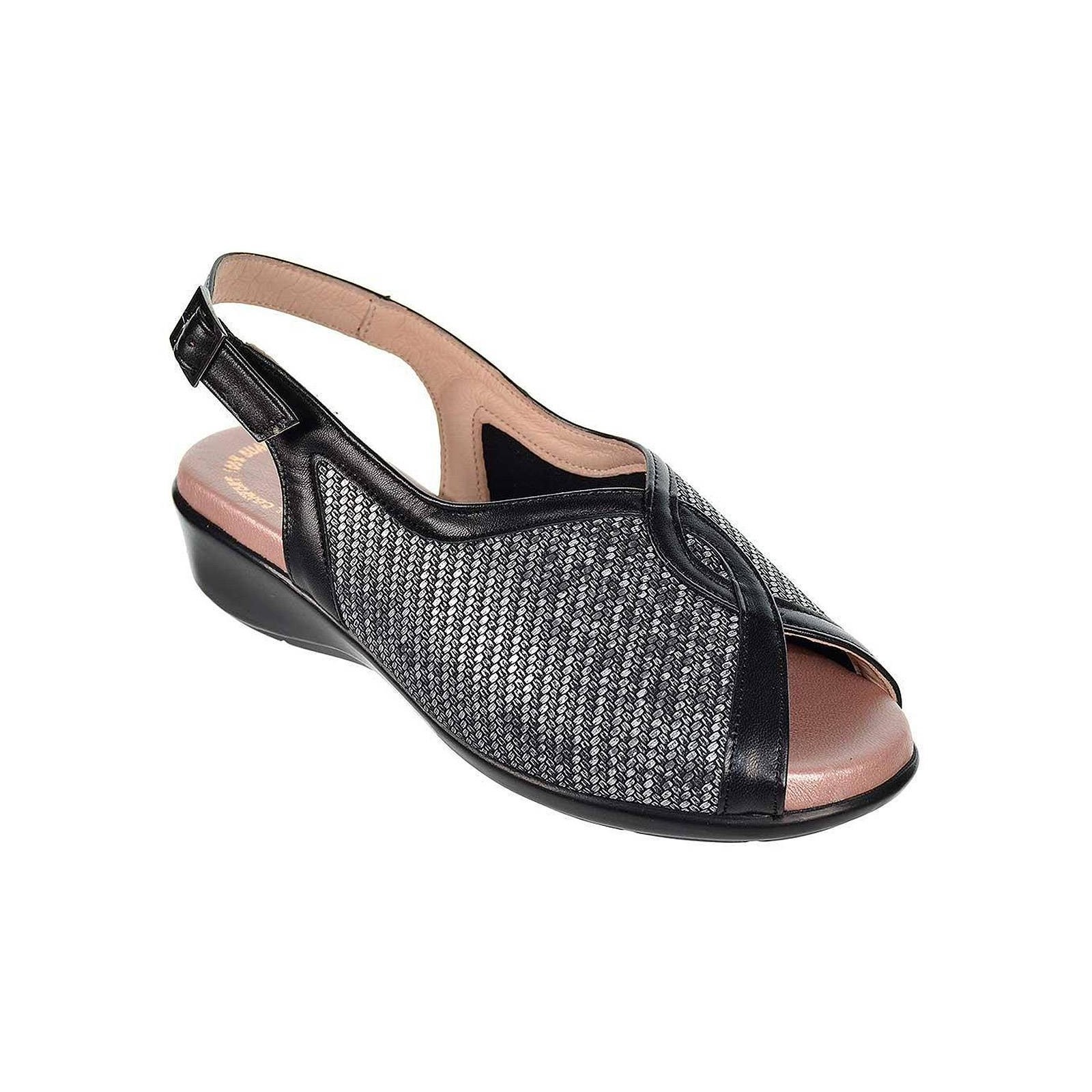 496 MIBA. Sandalia en material de piel y textil acolchado. Plantilla de piel confort, cierre con hebilla ajustable y piso con cuña de caucho antideslizante.Ideal para pies delicados, por su comodidad y flexibilidad.