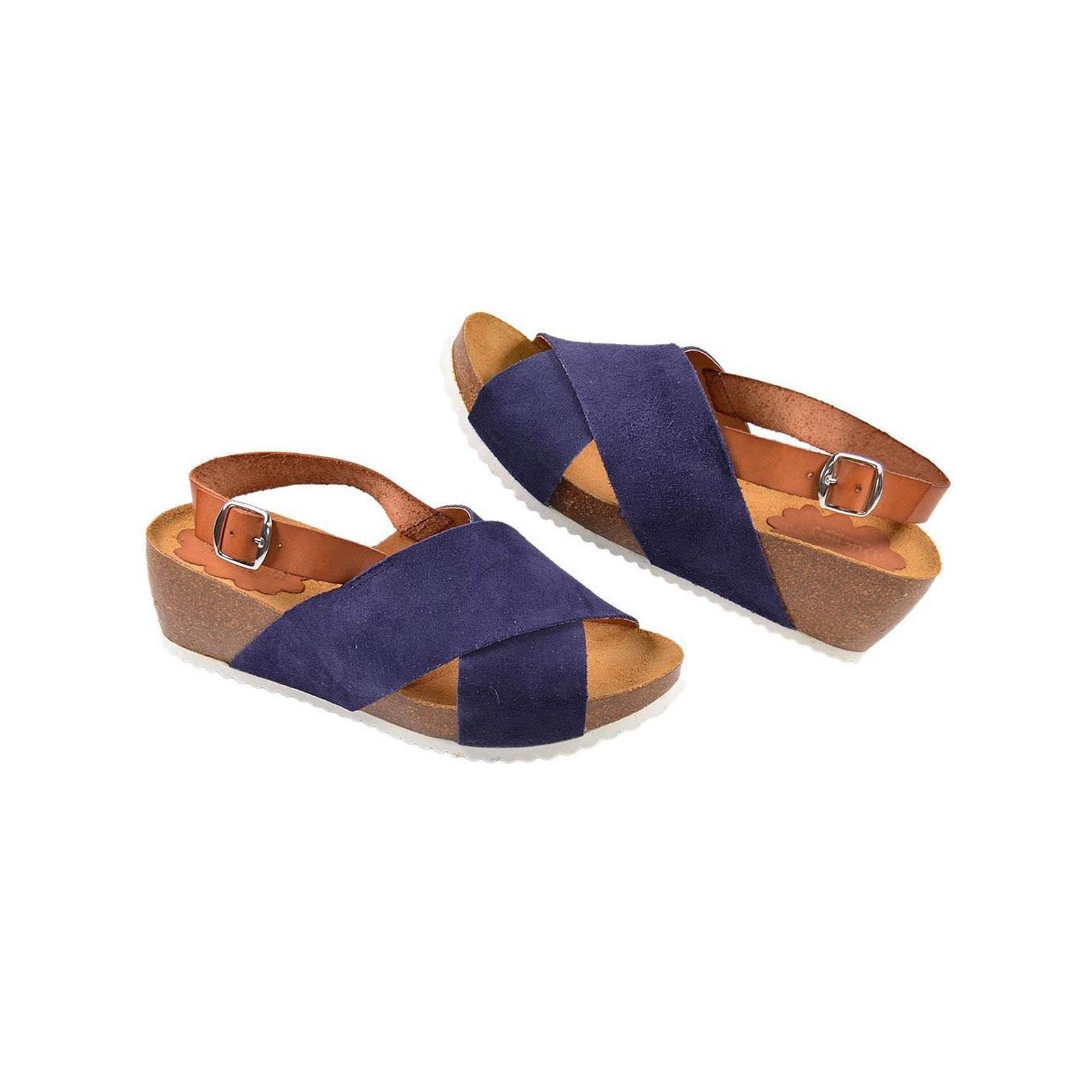 Sandalia serraje piel, cierre con hebilla ajustable. Piso cuña bio en piel y suela de goma antideslizante. Un estilo muy fresco y cómodo para verano.