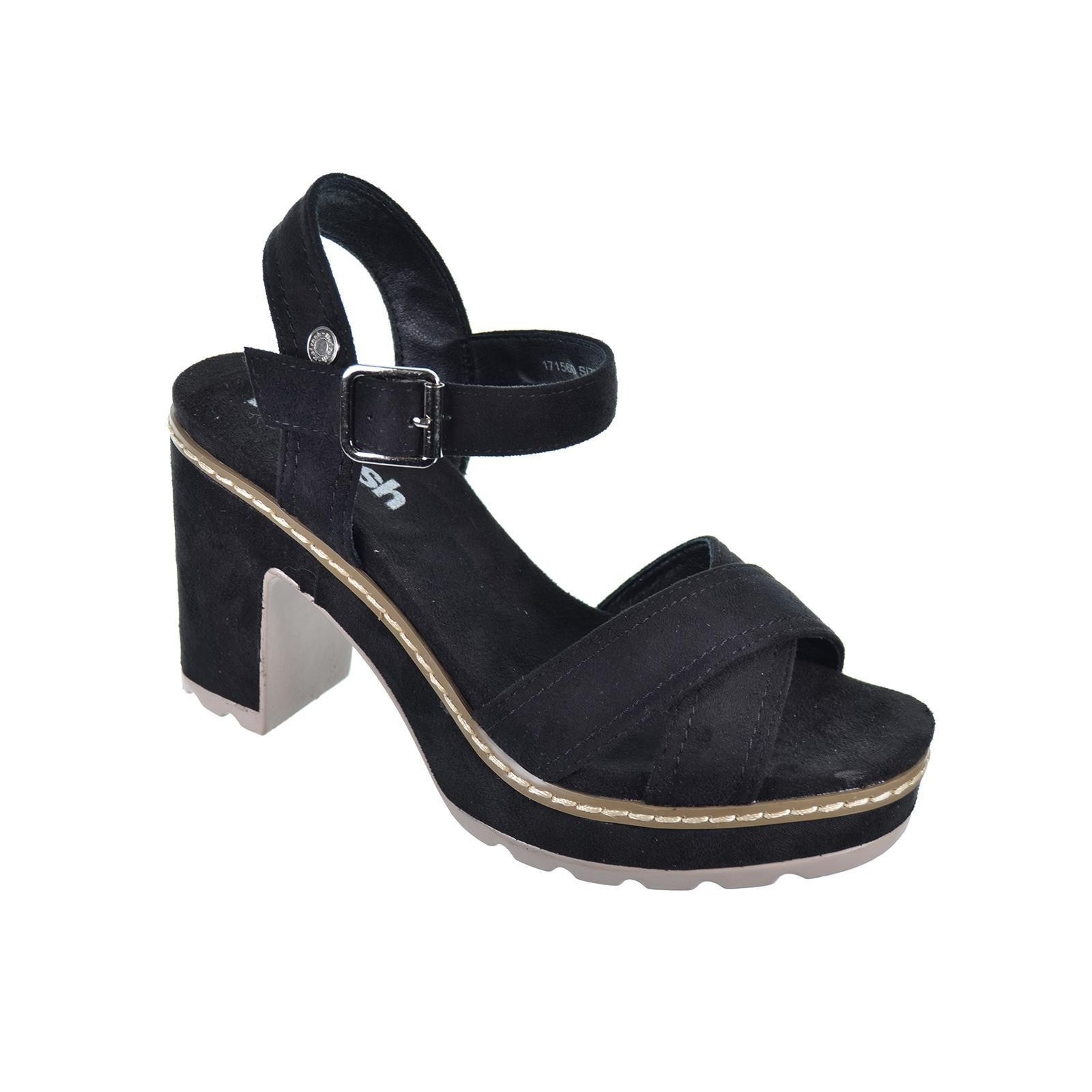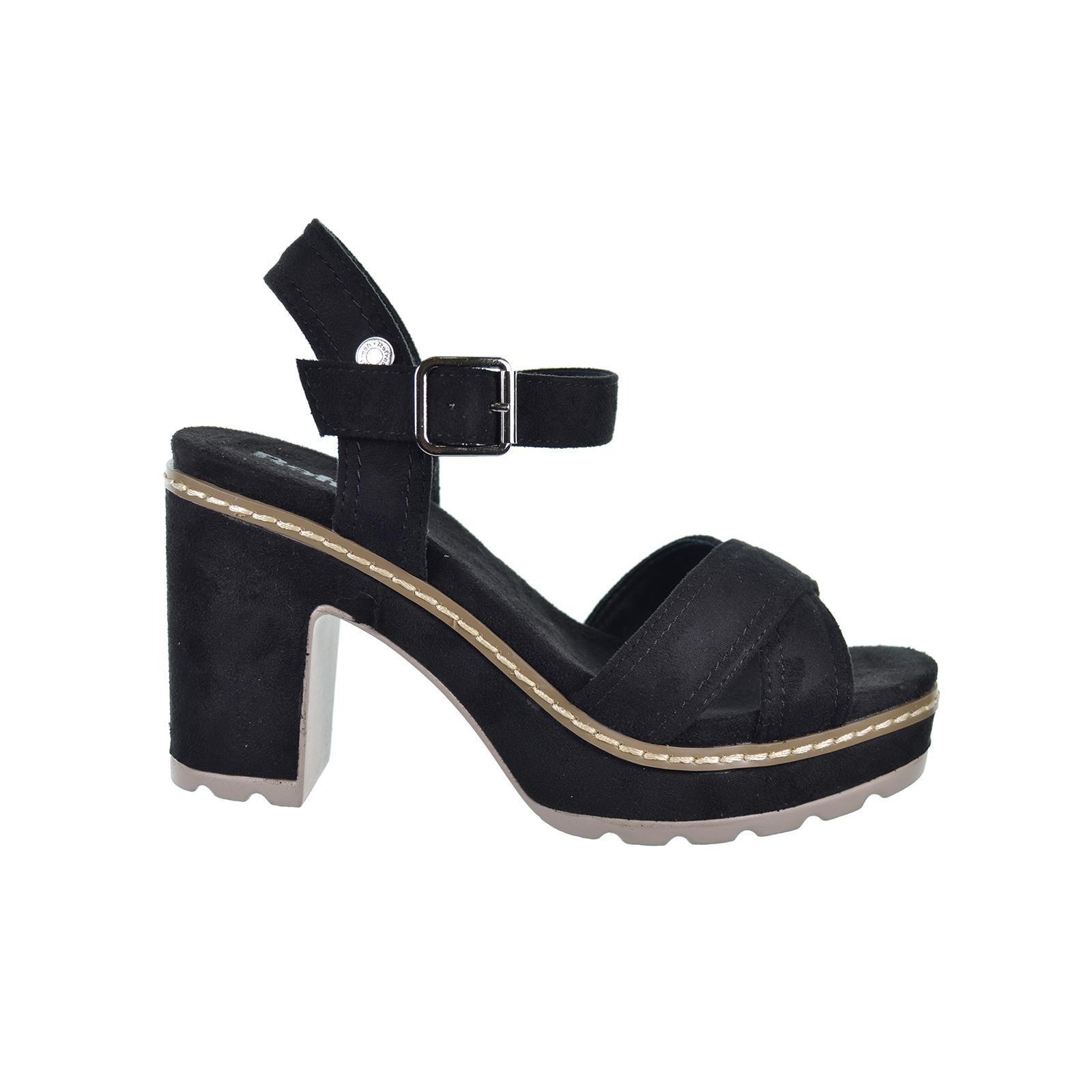 Refresh 171560 Sandalia fabricada en suave antelina. Modelo de pala cruzada y pulsera al tobillo con hebilla ajustable. Cómoda planta acolchada. Tacón ancho de 8 cm y plataforma delantera forrado en el mismo material. Suela antideslizante. Este modelo ha obtenido el certificado vegano por la organización mundial PETA (Organización de los derechos de los animales).