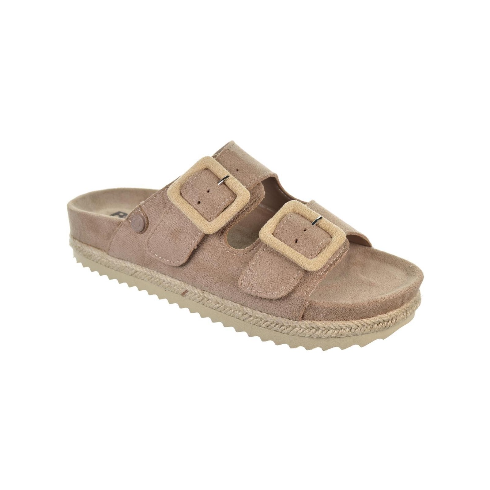 Refresh 171881 Sandalia en suave antelina. Modelo de pala doble con hebillas ajustables. Forrado interior sintético y planta bios forrada en textil. Piso de yute trenzado y suela de eva termoconformada. Este modelo ha obtenido el certificado vegano por la organización mundial PETA (Organización de los derechos de los animales).
