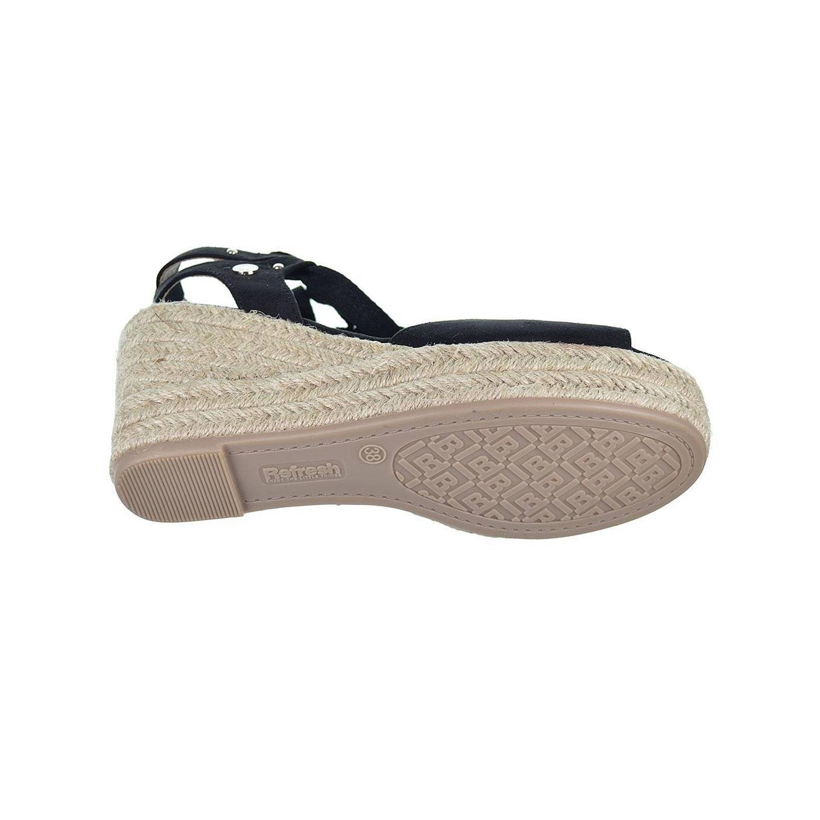 170771 Refresh sandalia en antelina, con cierre en cintas. Forrado interior en textil y plantilla acolchada muy confortable. Piso de plataforma con cuña de 8cm de altura, forrado en yute y piso de goma antideslizante. Ideales para combinar con tus vestidos y jeans de este verano.