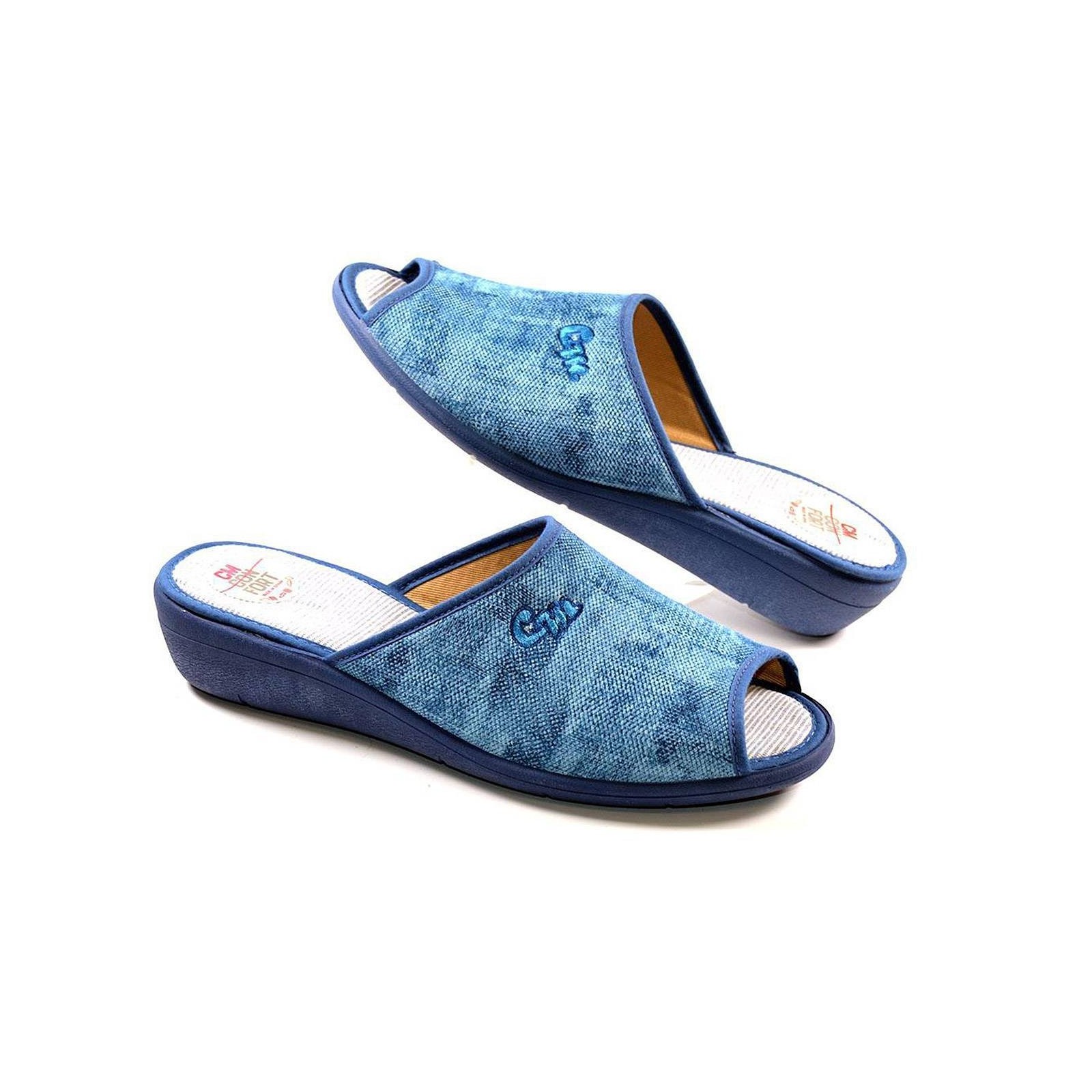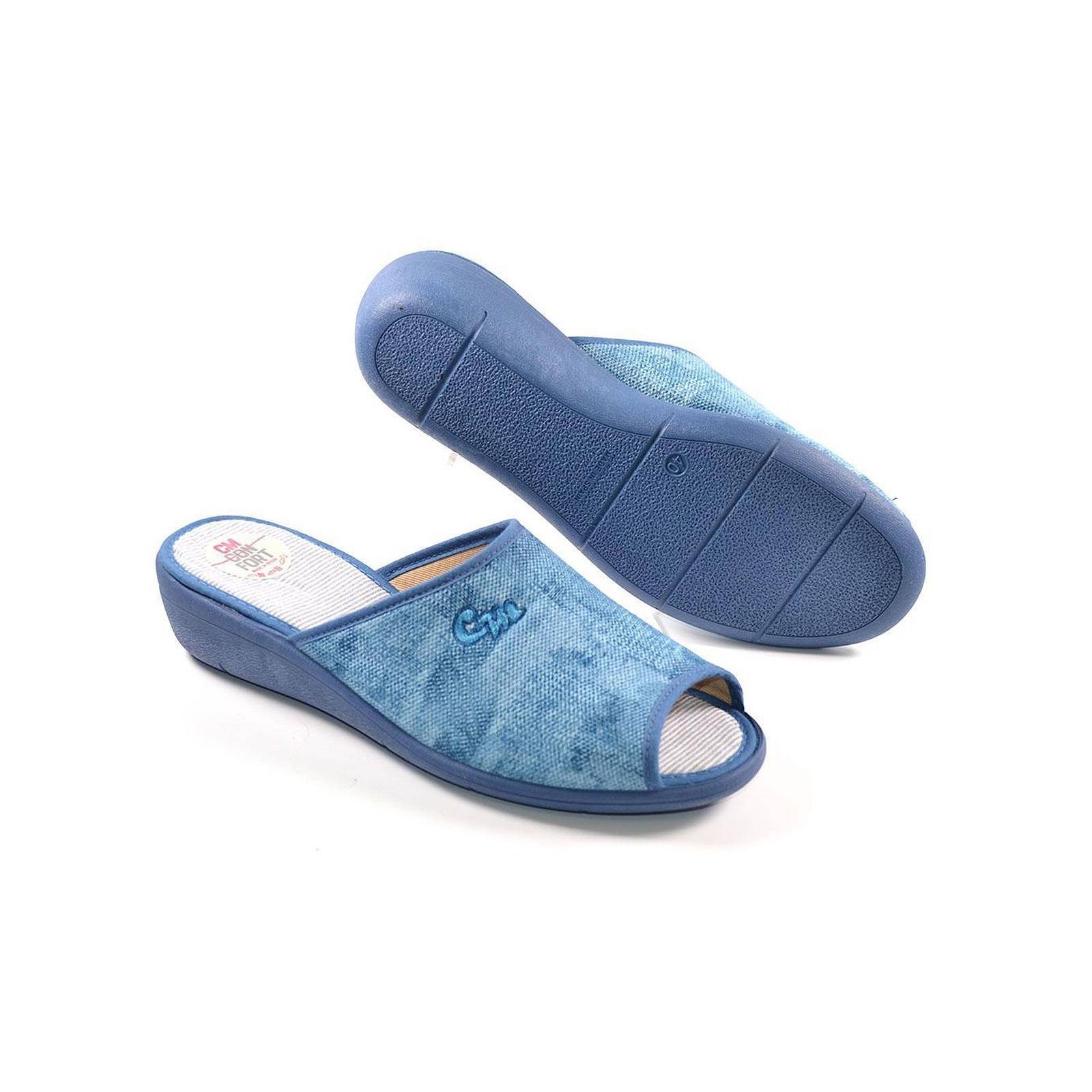 10223 CM Confort. Chancla textil con puntera abierta. Plantilla acolchada para un máximo confort. Piso con cuña de goma antideslizante. Perfectas para casa!!