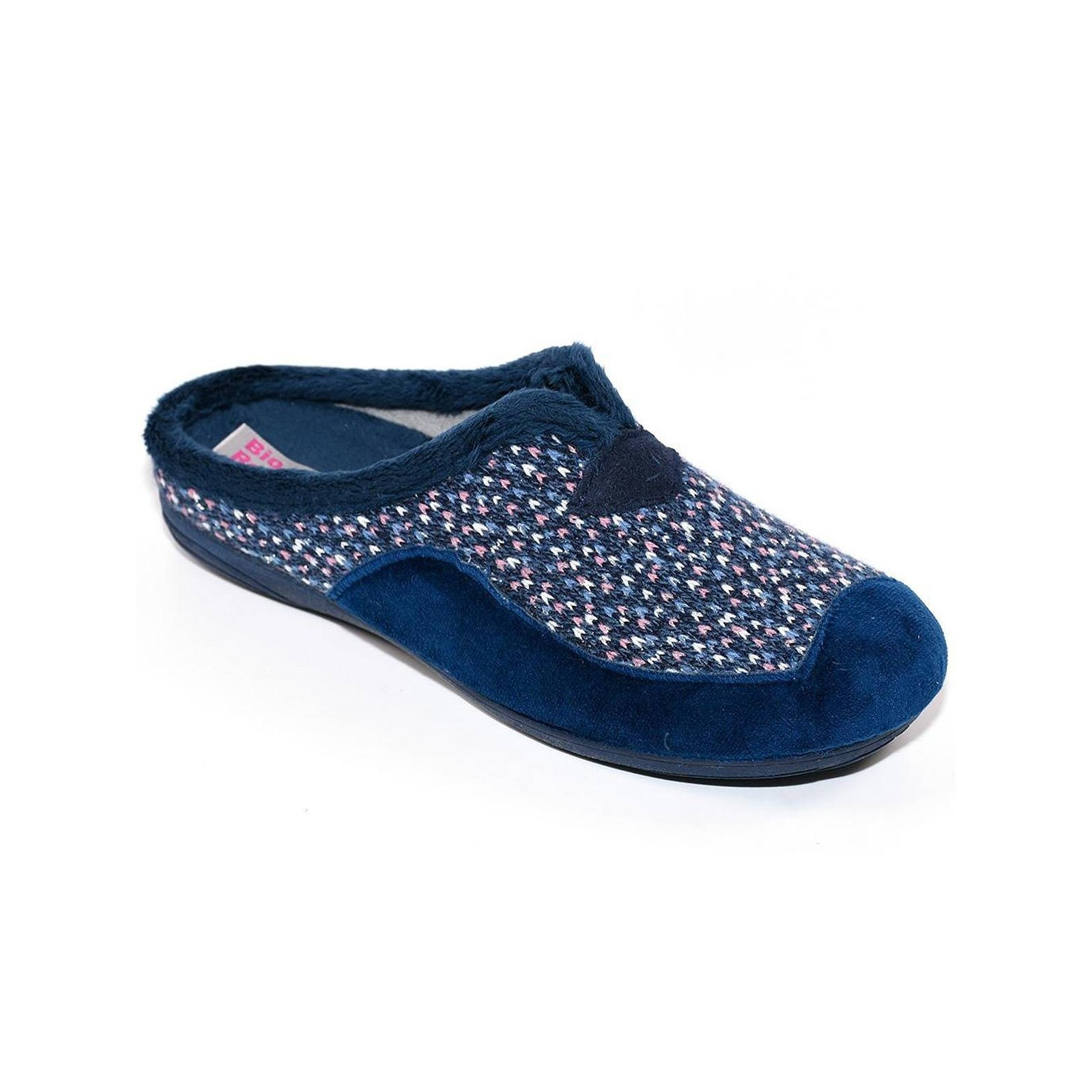 13268 BIORELAX. Zapatilla destalonada, fabricada en textil muy suave y plantilla extraible acolchada para un máximo confort. Piso de goma antideslizante, muy ligero y flexible. Ya puedes disfrutar en casa con tus pies calentitos, a todo confort.