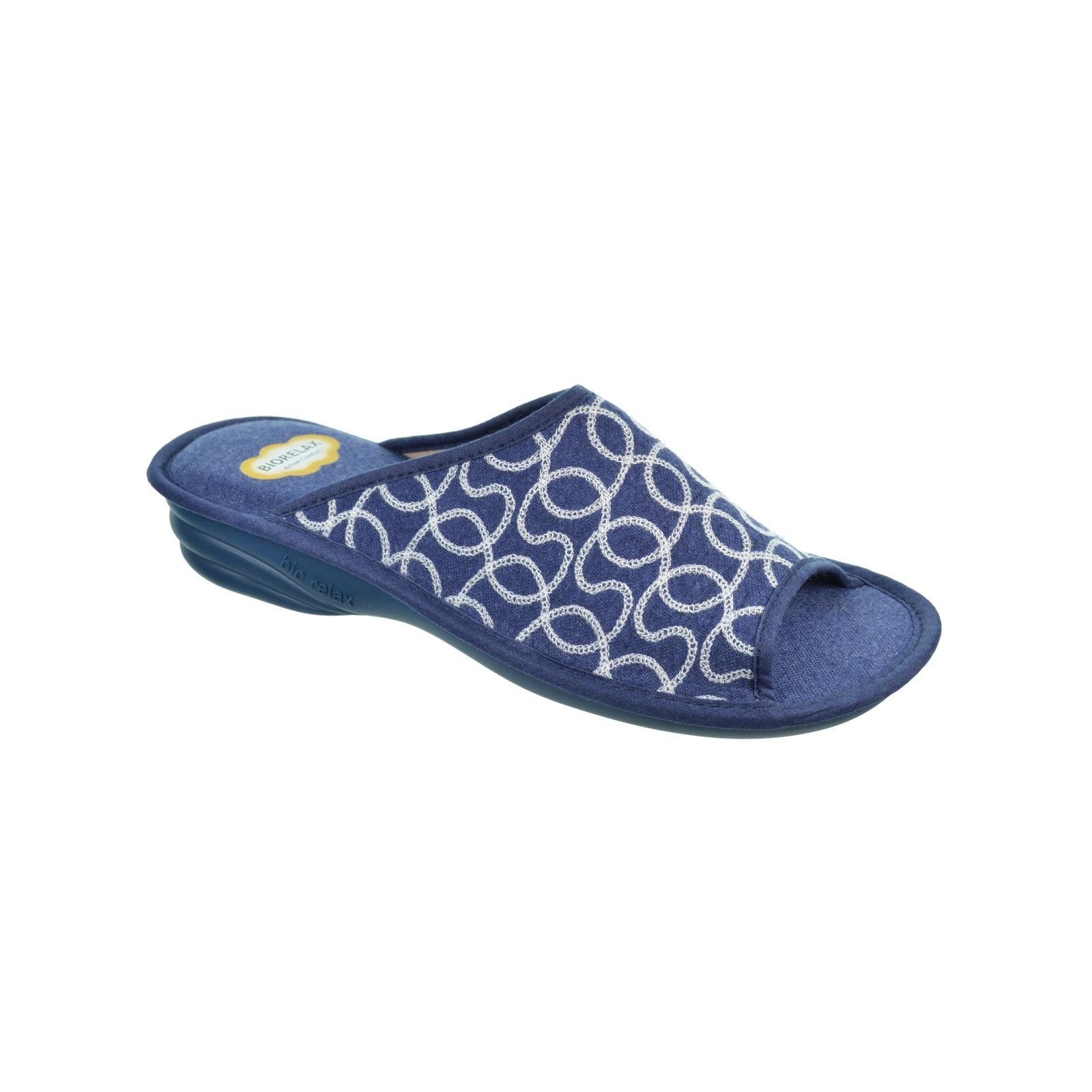 Biorelax 1816 Zapatilla destalonada en textil con puntera abierta, esponja técnica y tejidos transpirables de máxima calidad. Piso de cuña en caucho antideslizante, muy flexible.Por su plantilla de látex natural y esponja técnica ergonómica indeformable, hace que sean las elegidas para los pies más delicados.