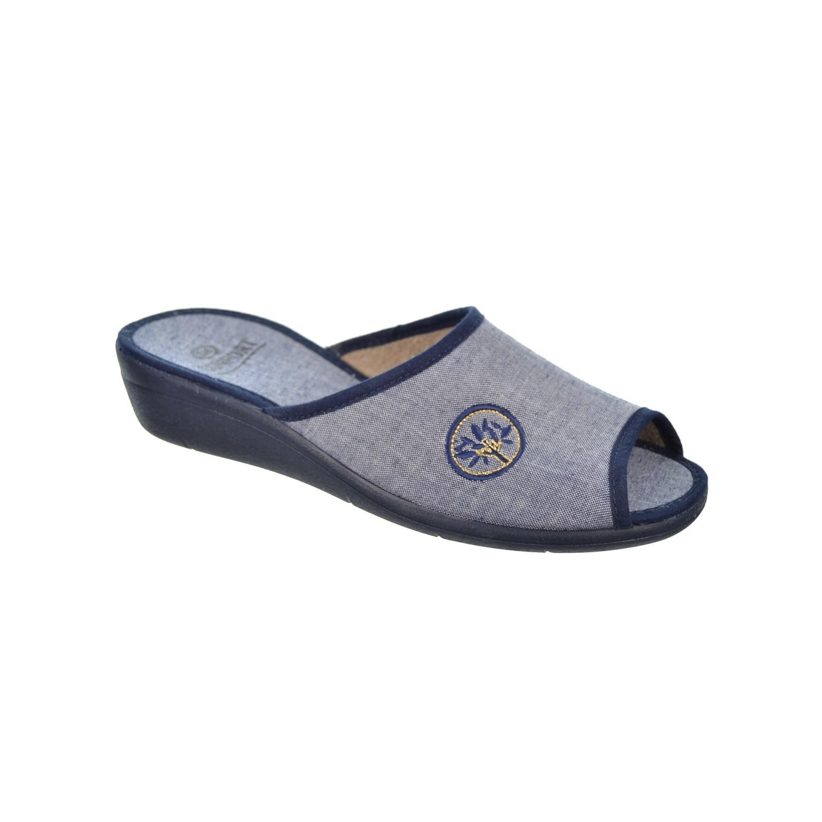 Cmconfort 40130 Zapatilla en textil destalonada con puntera abierta, plantilla textil acolchada para un máximo confort. Piso con cuña de goma antideslizante. Ideales para casa por su comodidad al caminar.