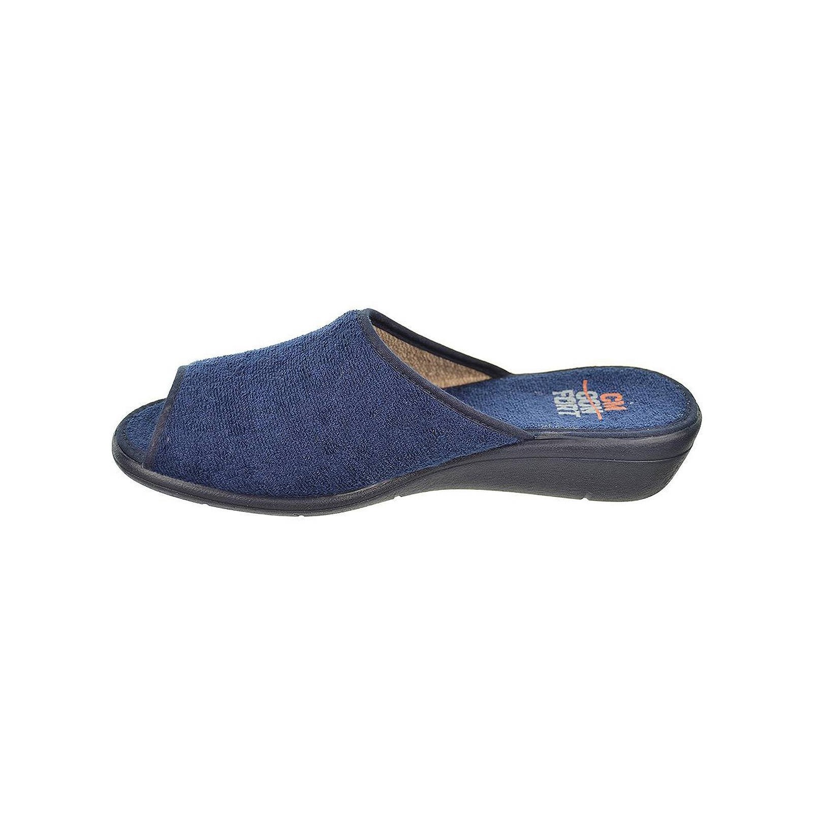 10221 Cmconfort Zapatilla textil destalonada con puntera abierta, plantilla textil acolchada para un máximo confort. Piso con cuña de goma antideslizante. Ideales para casa por su comodidad al caminar.