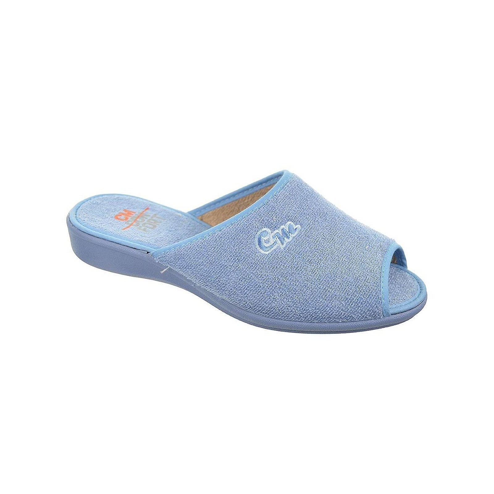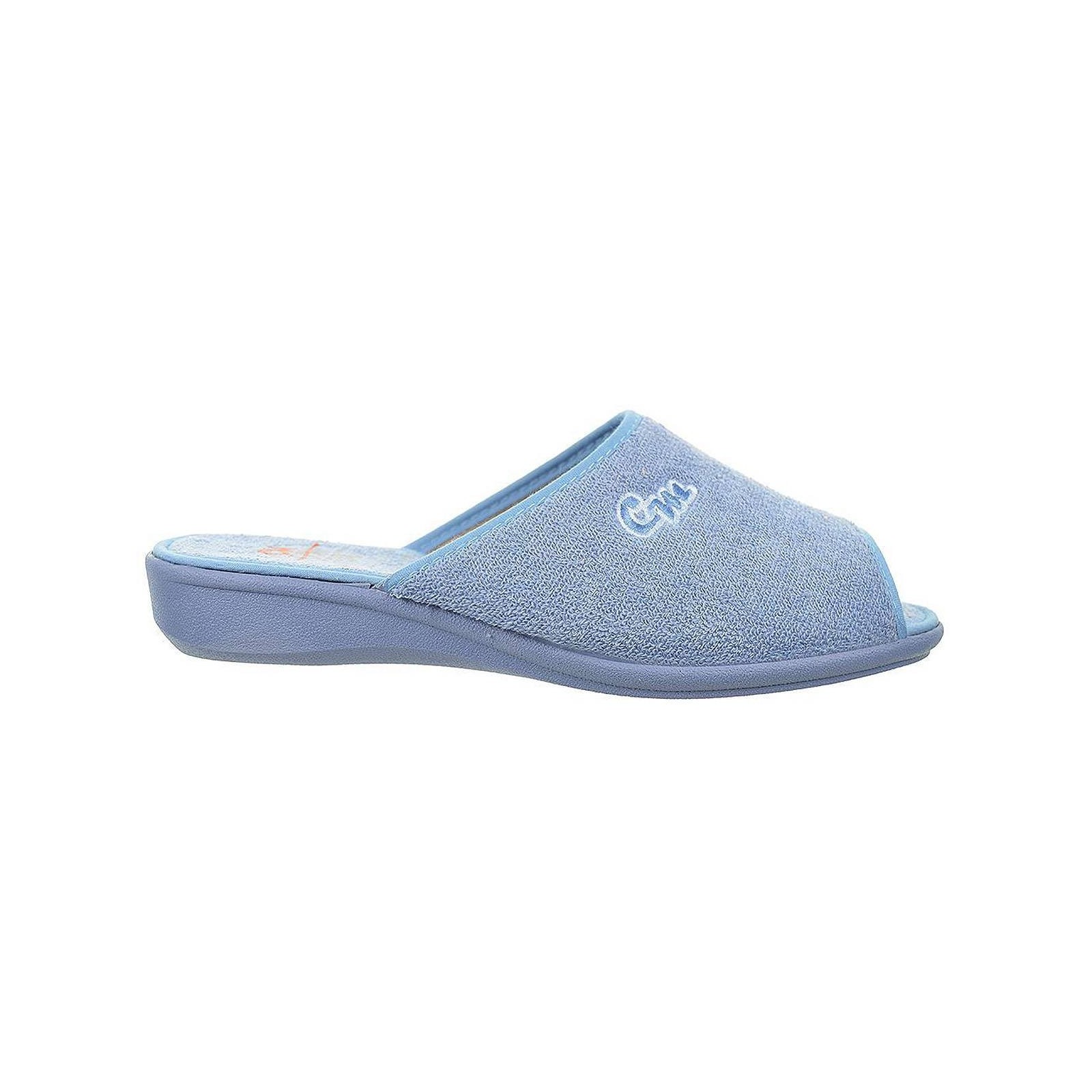 20279 Cmconfort Zapatilla textil destalonada con puntera abierta, plantilla textil acolchada para un máximo confort. Piso con cuña de goma antideslizante. Ideales para casa por su comodidad al caminar.