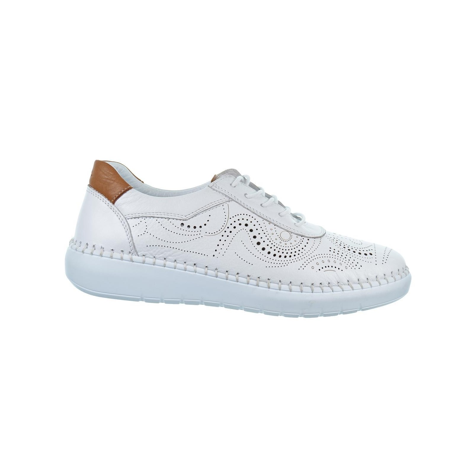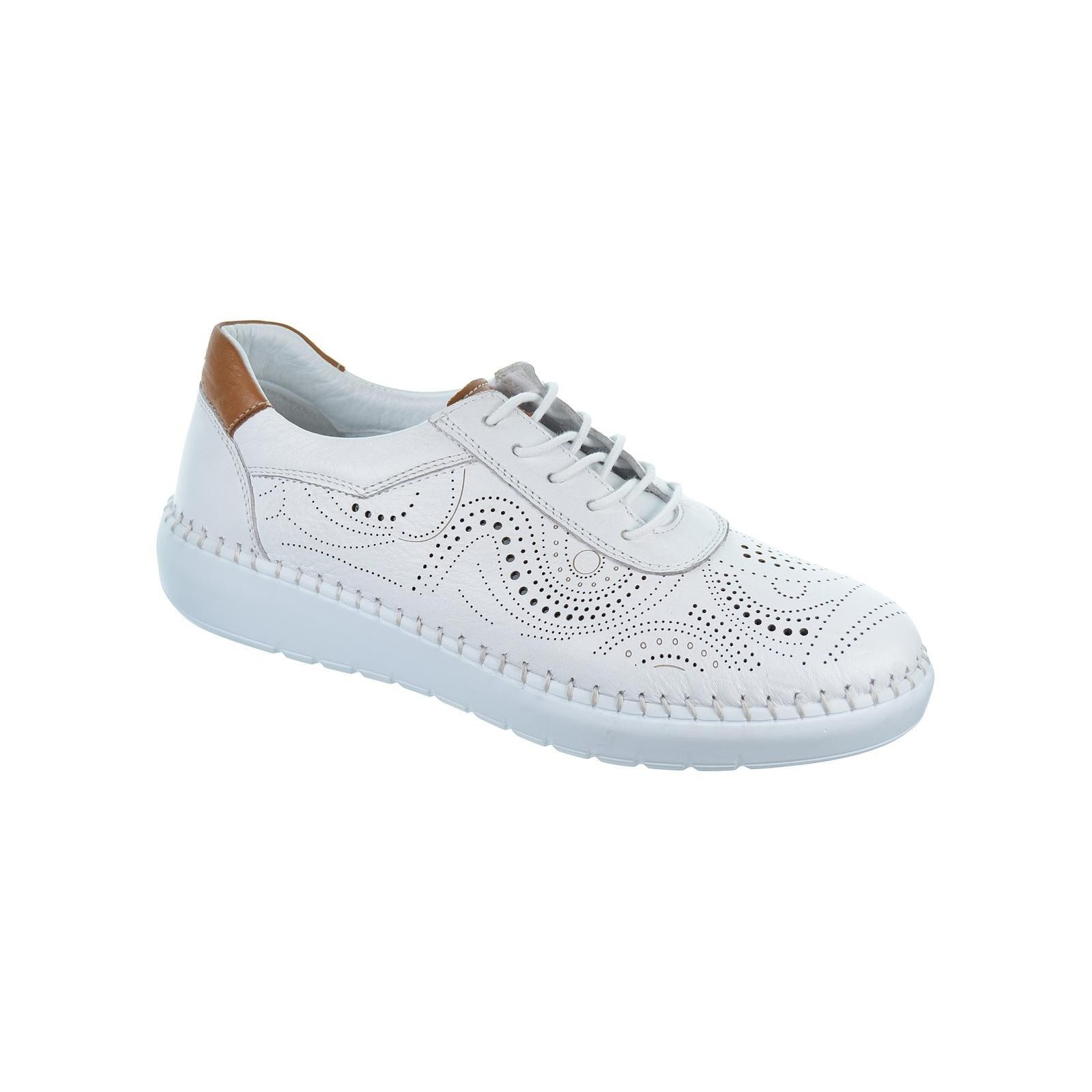 30s Treintas L1003 Zapato en piel perforada con formas circulares, forro interior piel, collarín acolchado y plantilla extraíble muy confortable. Cierre en cordones ajustables y suela de caucho cosida a mano superflexible, muy ligera.Ideales por su comodidad para el día a día.