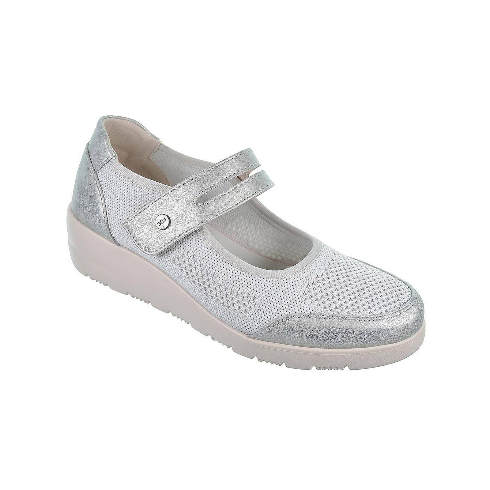 3951 Treintas 30s. Zapato estilo Mercedes sintético y textil perforado. Plantilla acolchada extraible memory foam extraible. Cierre con velcro y suela de caucho con cuña de 4cm. muy ligera y flexible. Un diseño perfecto para tu día a día, con el que podrás caminar al máximo confort.