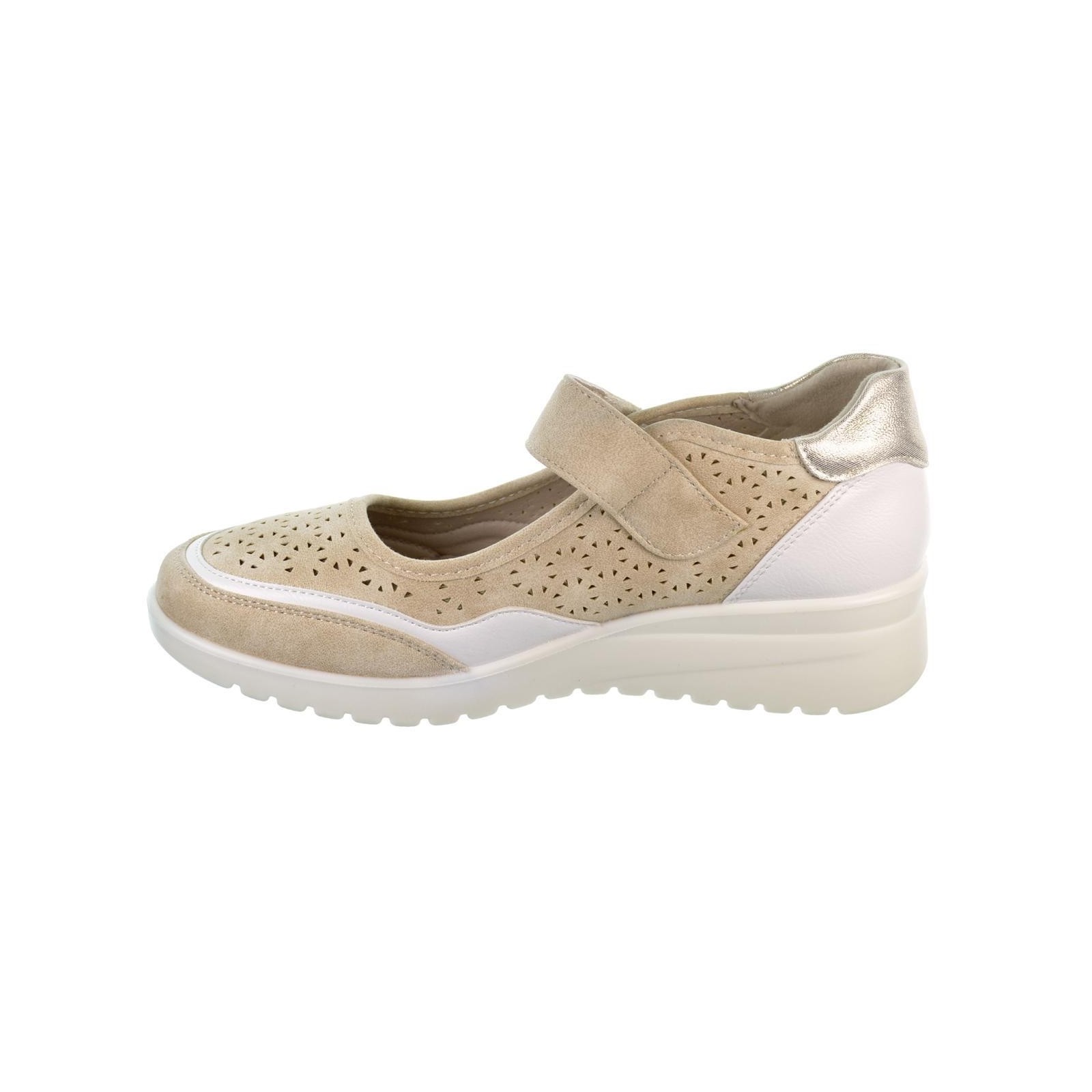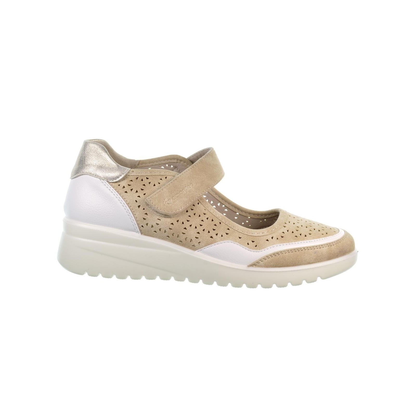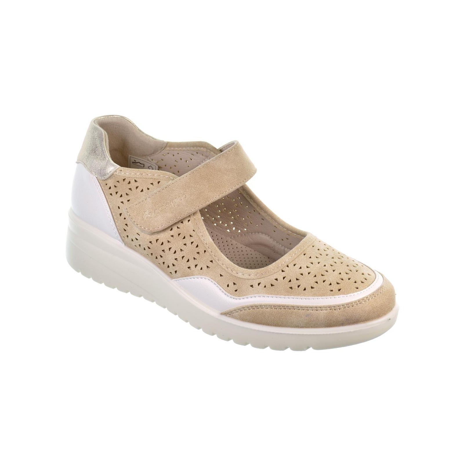 Amarpies 28309. Zapato en sintético perforado. Forrado interior y plantilla sintético acolchada confort extraíble. Cierre con velcro ajustable y suela de caucho con cuña 4,5cm de altura y plataforma de 2cm, muy ligera y flexible.Un diseño perfecto para tu día a día, con el que podrás caminar al máximo confort.