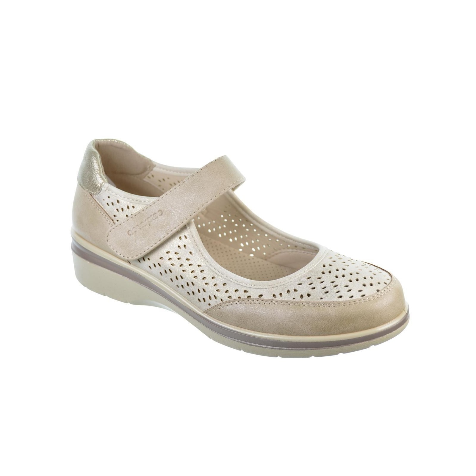 Amarpies 28401. Zapato en sintético perforado. Plantilla sintética acolchada confort extraíble. Cierre con velcro ajustable y suela de poliuretano, con cuña de 4,5cm y platadorma de 2cm, muy ligera y flexible.Un diseño perfecto para tu día a día, con el que podrás caminar al máximo confort.