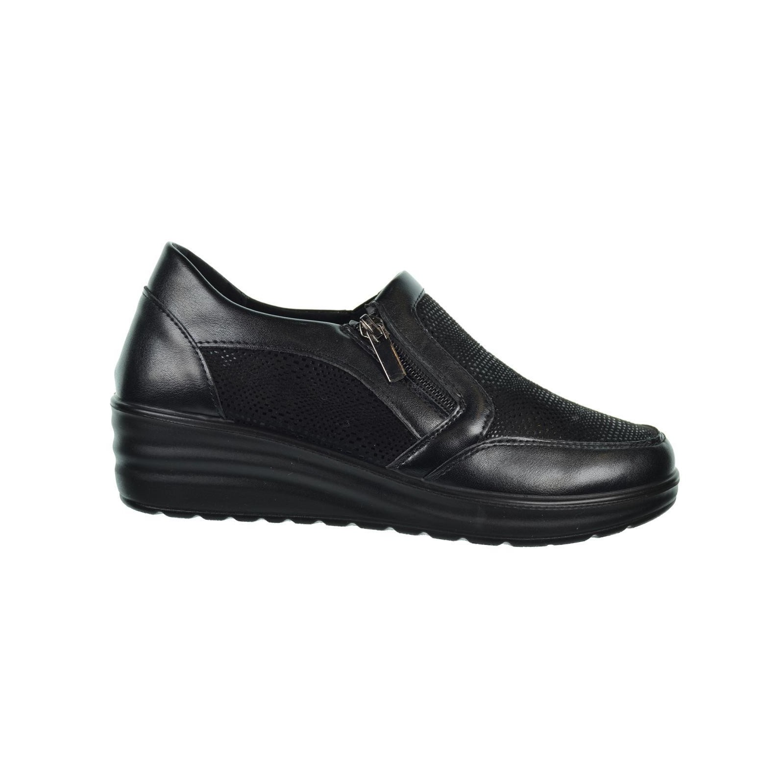 Amarpies 29391. Zapato en sintético y textil. Forrado interior textil y plantilla textil confort extraíble. Cierre con cremallera exterior y elástico interior, para un ajuste perfecto. Suela de Poliuretano con cuña de 4´5cm de altura, muy ligera y flexible.Un diseño perfecto para tu día a día, con el que podrás caminar al máximo confort.