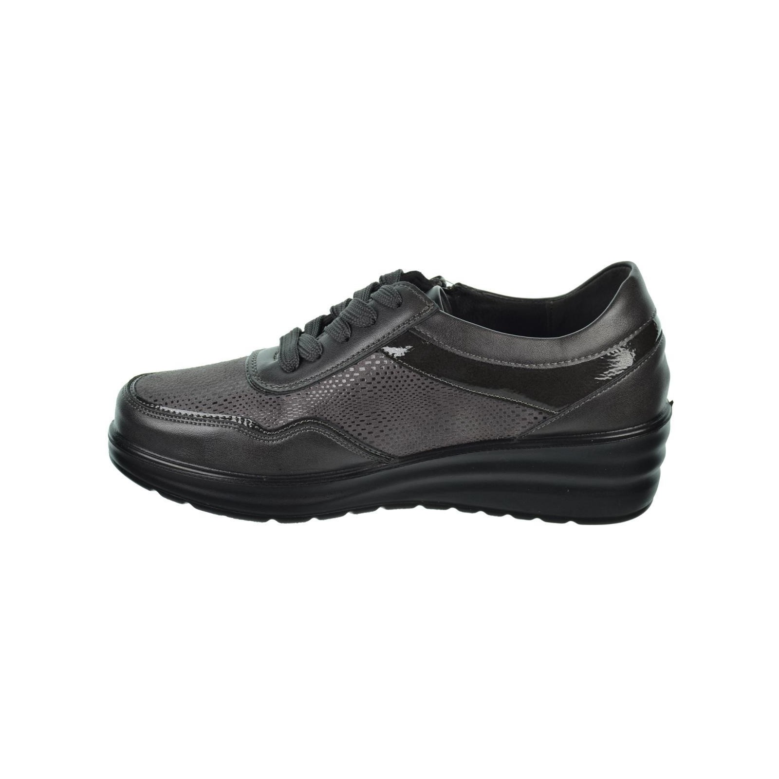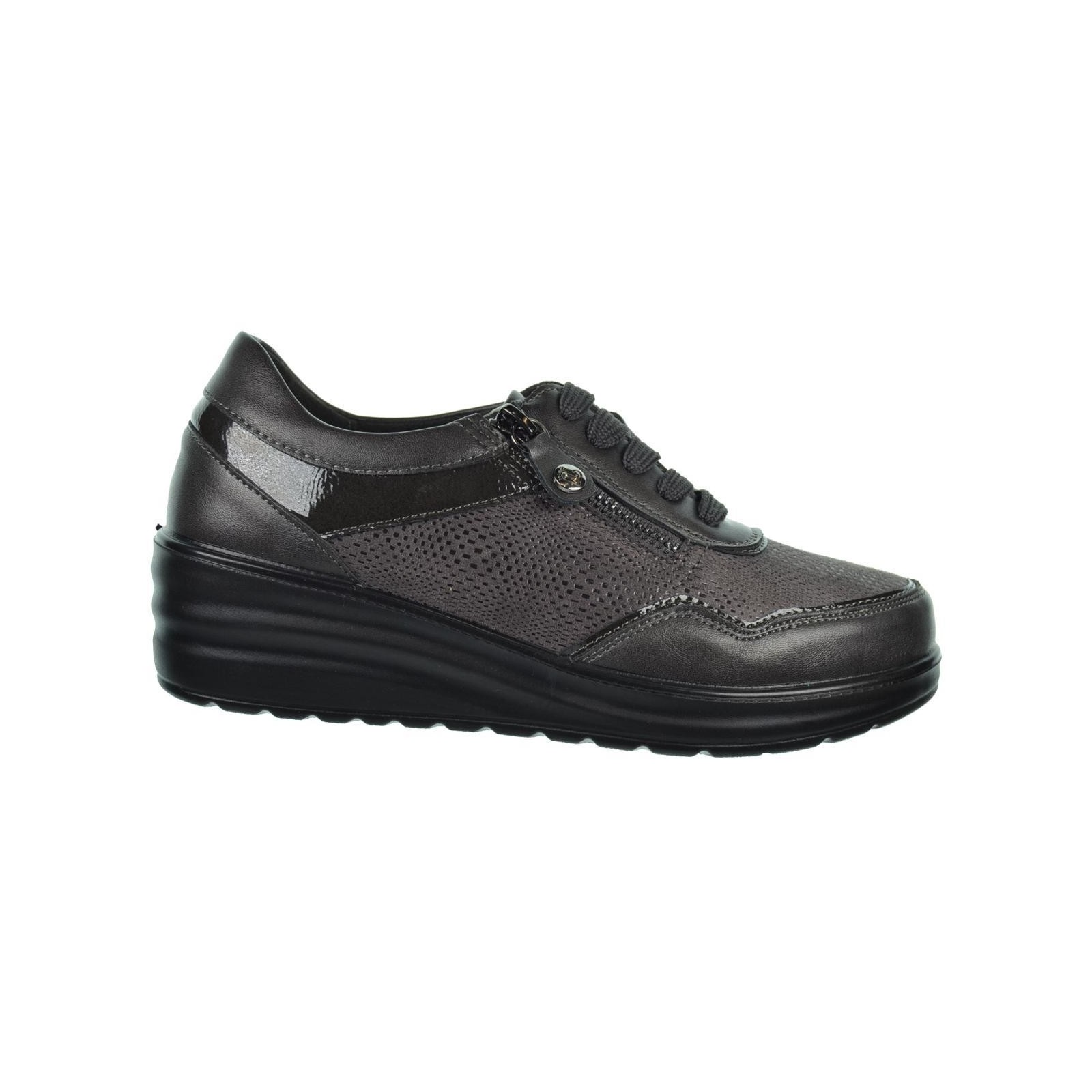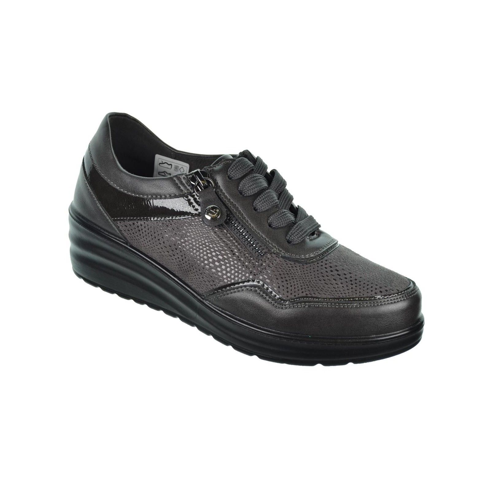 Amarpies 29392. Zapato en sintético y textil. Forrado interior textil y plantilla textil confort extraíble. Cierre con cremallera exterior y cordones para un ajuste perfecto. Suela de Poliuretano con cuña de 4´5cm de altura, muy ligera y flexible.Un diseño perfecto para tu día a día, con el que podrás caminar al máximo confort.