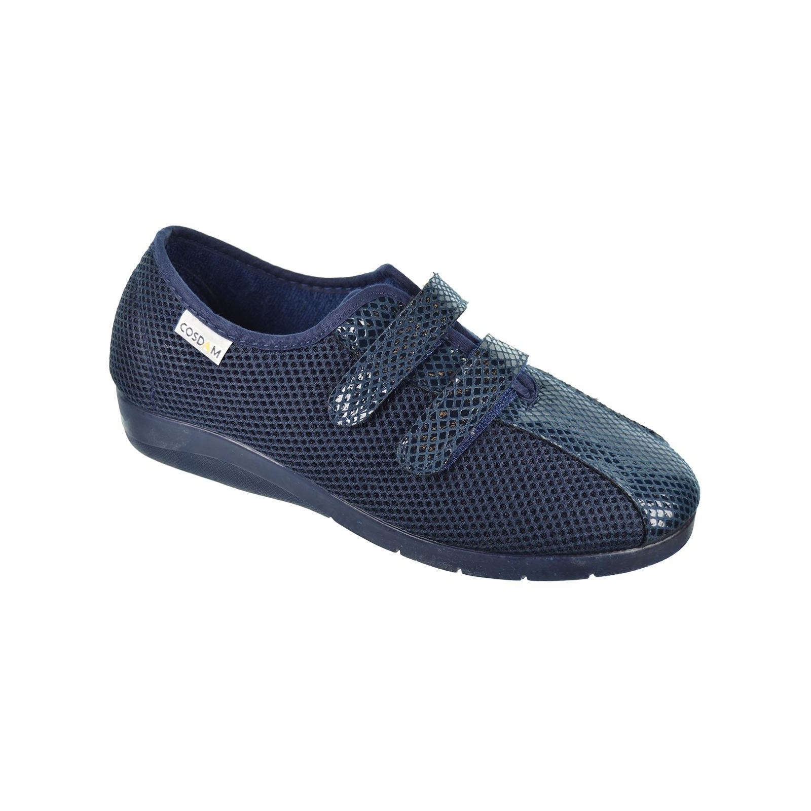 Cosdam 9022. Zapatilla textil combinada con material grabado, cierre con doble velcro ajustable. Piso de goma antideslizante, muy confortable.Ideal para pies delicados.