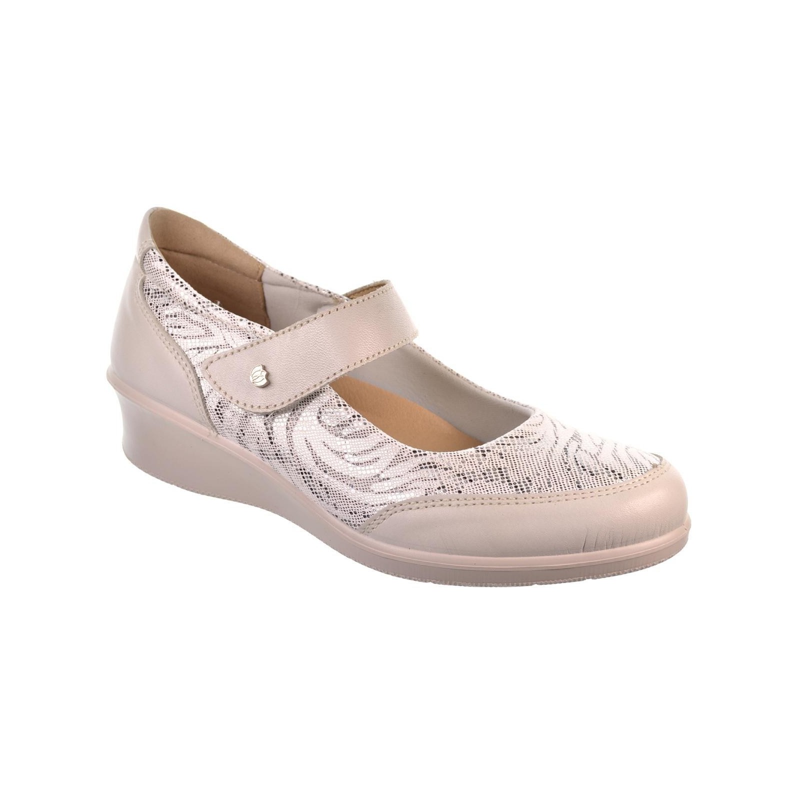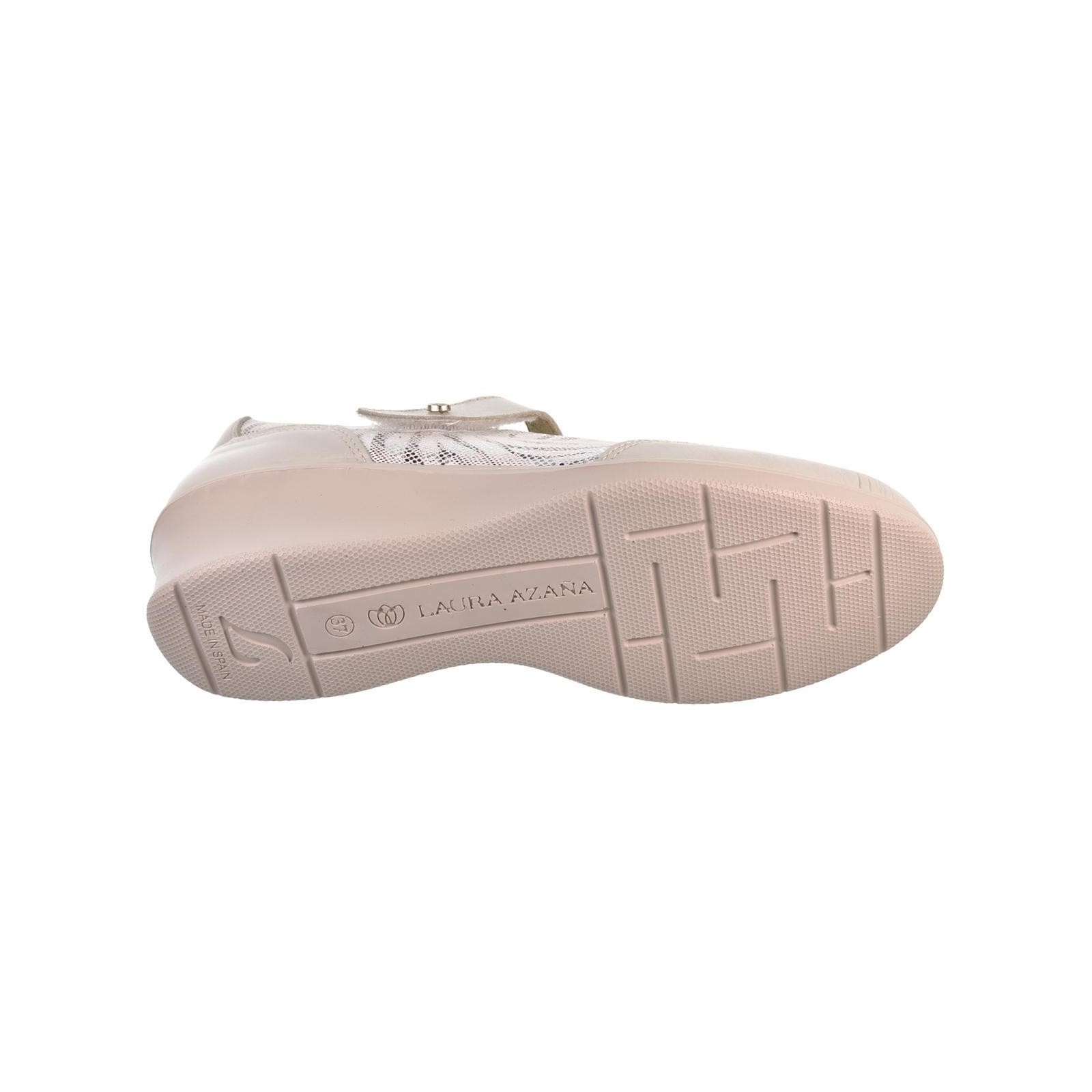 Laura Azaña 21863. Zapato en piel con fantasía y cierre con velcro regulable. Forro interior textil acolchado y plantilla extraíble textil acolchada antibactérias. Piso de poliuretano en cuña de 4cm.de altura, muy ligero y flexible.Un estilo muy cómodo para el día a día.