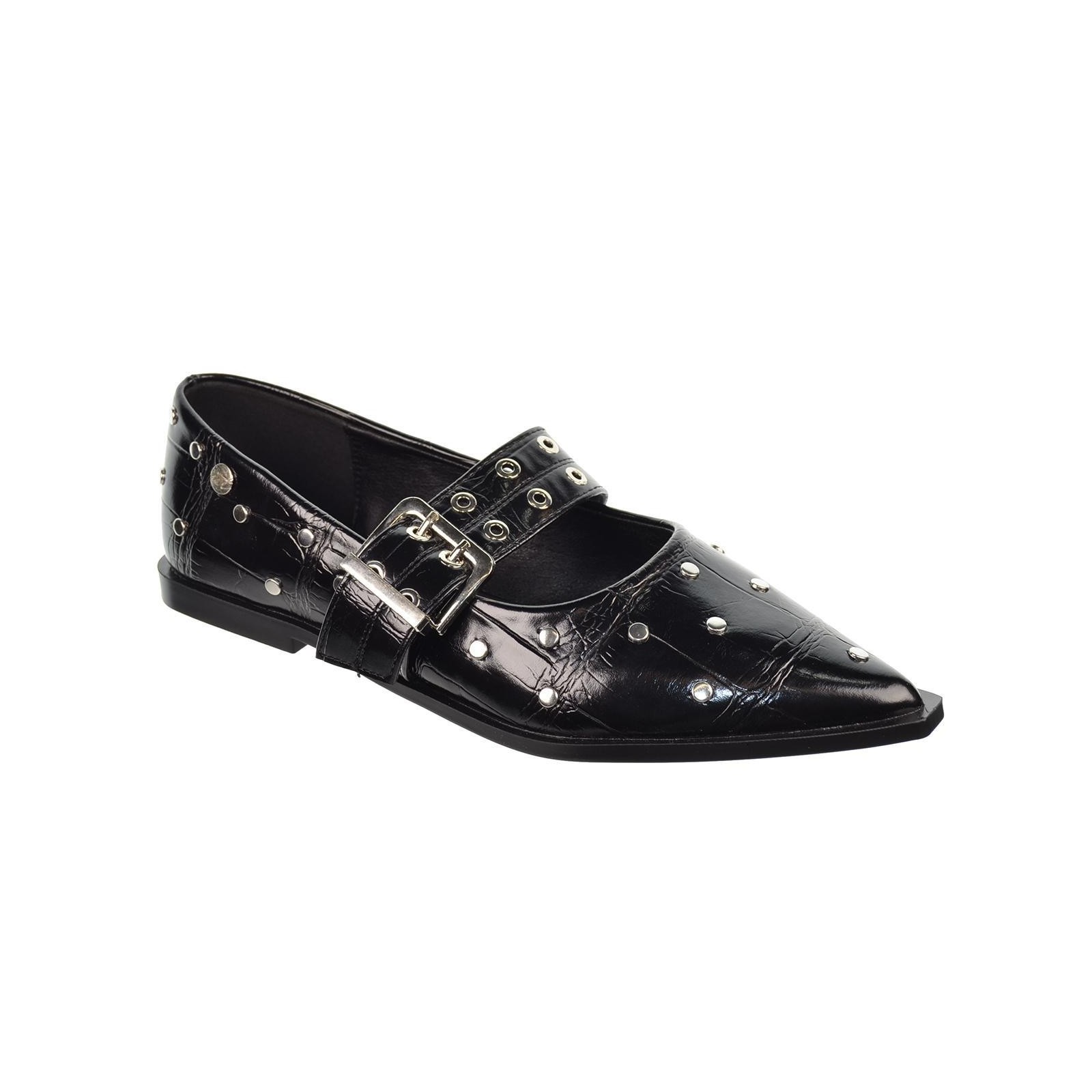Isteria 530 Zapato en charol sintetico y decoración con remaches. Cierre con hebilla regulable en empeine. Forro y plantilla sintético acolchada muy confortable. Suela de caucho antideslizante muy flexible.Un diseño de moda que no puede faltar en tu outfit.