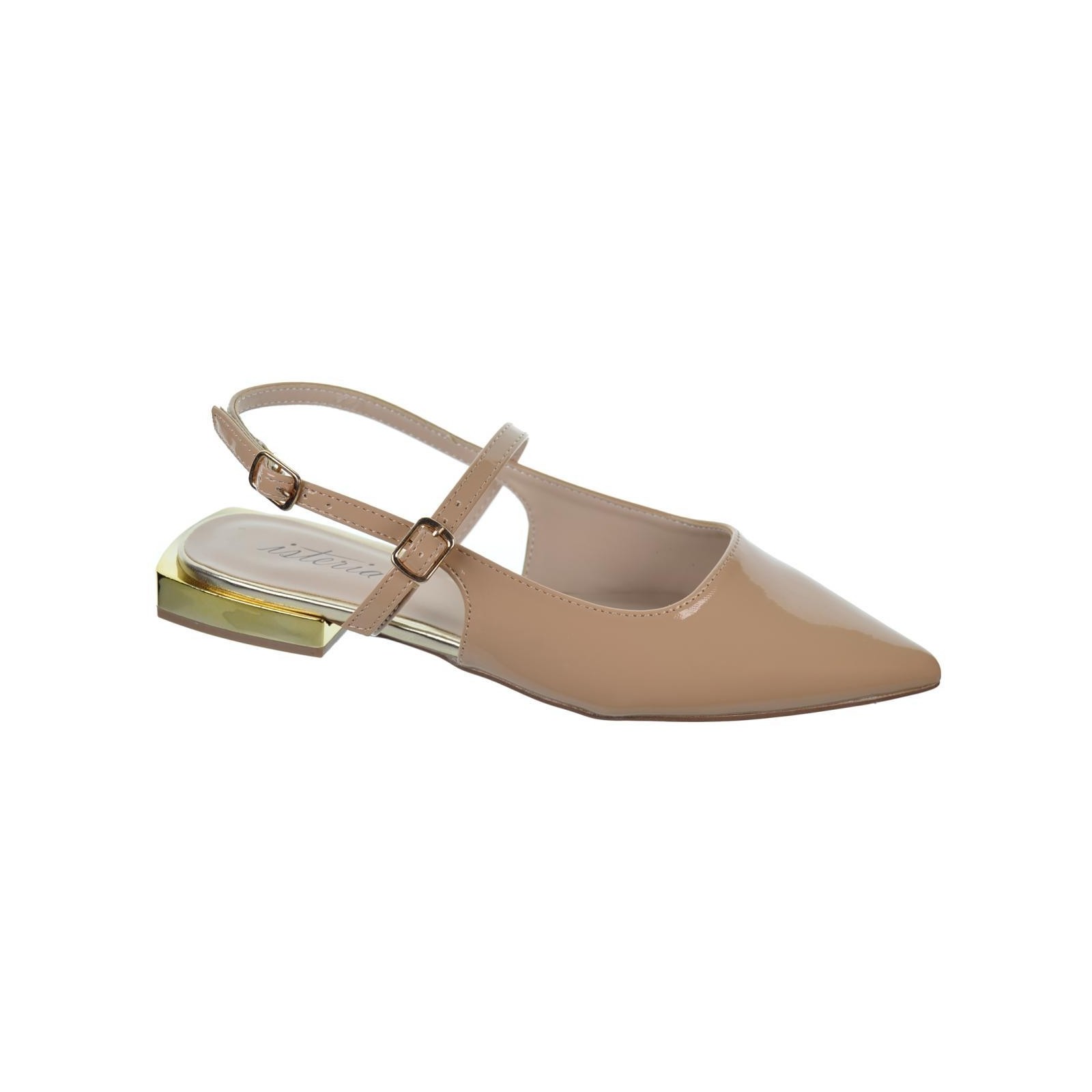 Isteria 24008 Zapato en charol sintético con punta fina. Cierre con hebilla regulable en empeine y talón. Plantilla acolchada muy confortable. Tacón ancho metalizado en color oro de 2cm de altura y suela de goma antideslizante muy flexible.Un diseño que no puede faltar en tu outfit.