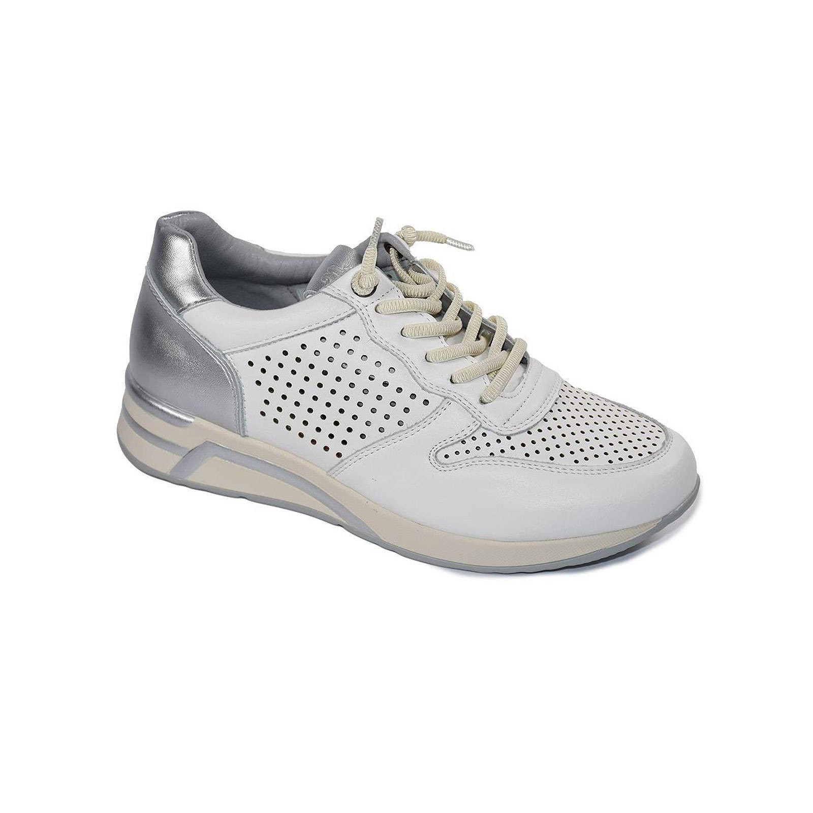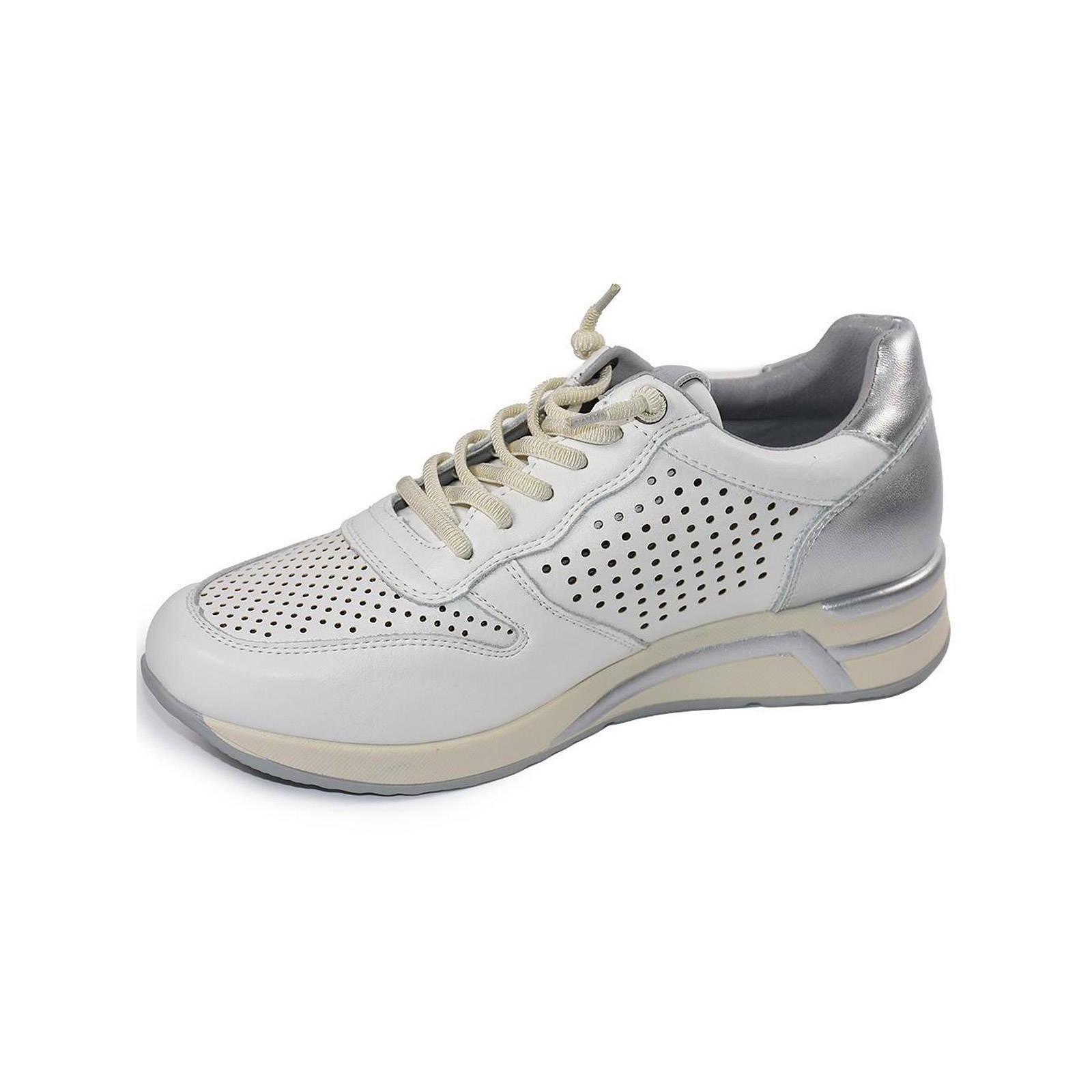 3550 TREINTAS 30s. Zapato fabricado en piel perforada. Plantilla acolchada memory foam extraible. Cierre en cordones elásticos y suela de caucho con cuña de 4cm. muy ligera y flexible. Un diseño perfecto para tu día a día, con el que podrás caminar al máximo confort.