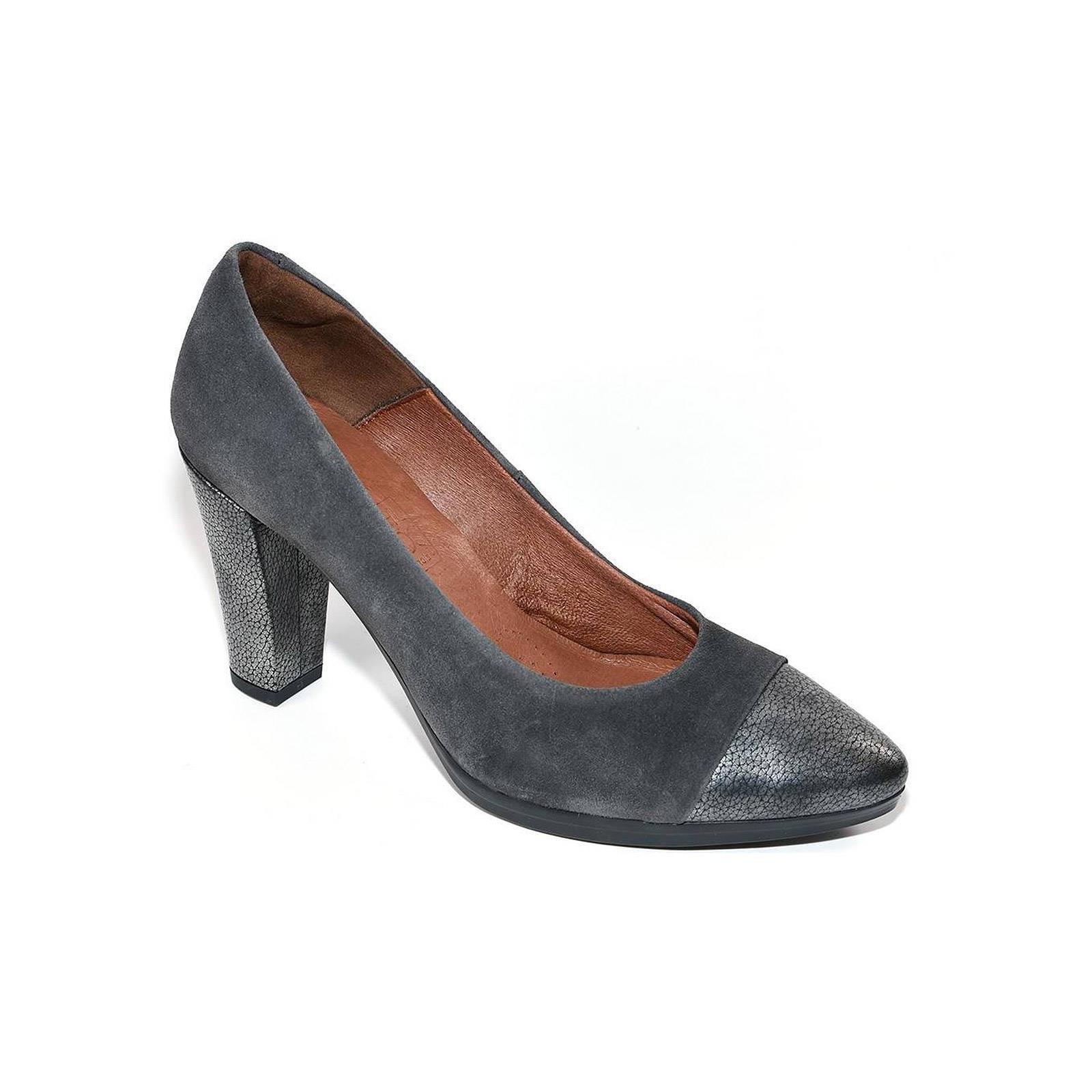82391 DESIREE. Zapato en material de piel serraje, combinado con puntera y tacón en piel grabada. Forro interior en textil. Dispone de una plantilla comfort para el descanso del metatarso. Piso con plataforma de goma antideslizante, ligera y muy flexible. Tacón ancho con altura de 8cm.aprox. Por su comodidad y versatilidad serán los elegidos para un look elegante.