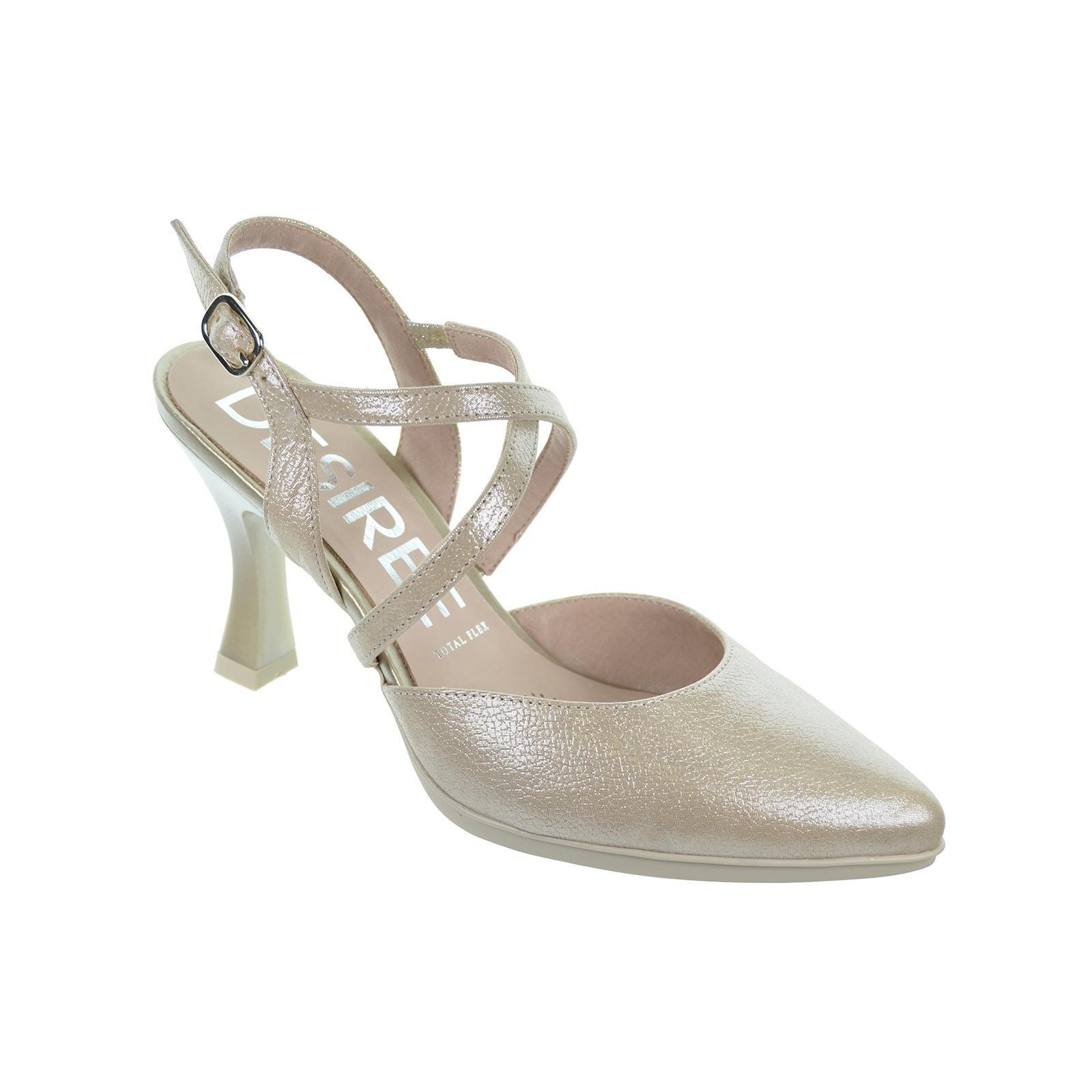 Desireé Sami5 Zapato piel destalonado con tiras cruzadas en empeine. Cierre con hebilla regulable. Plantilla en piel acolchada transpirable y ergonómica. Tacón de 7´5cm de altura con piso de goma de 1cm antideslizante.Ya puedes disfrutar de un calzado elegante y cómodo, ideal para eventos y ceremònias.
