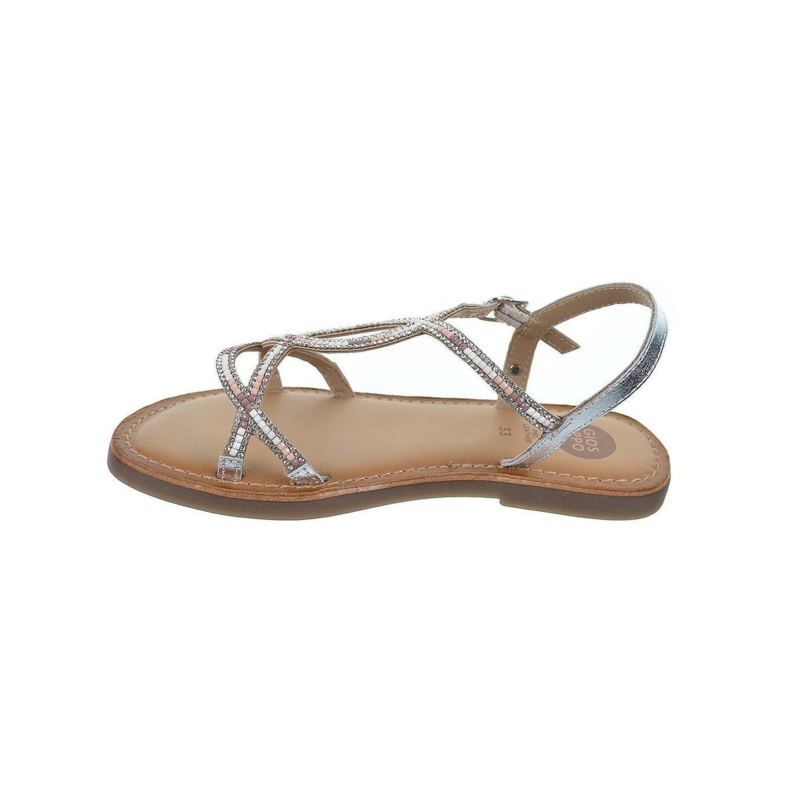 65825 Comal Gioseppo Sandalia piel metalizado con tiras cruzadas. Cierre con hebilla regulable y plantilla en piel acolchada. Piso de goma antideslizante y flexible. Presume de tus sandalias en eventos y ceremonias.