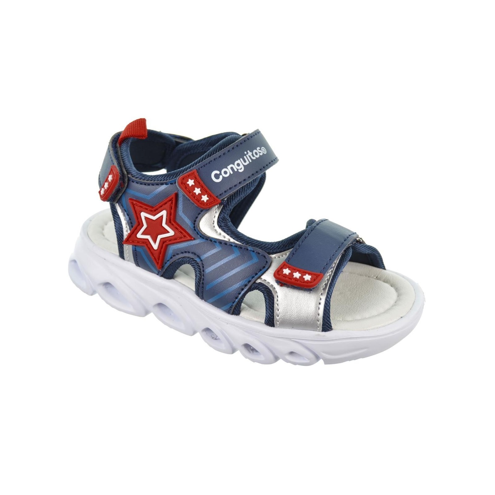 Conguitos 260006 Sandalia en sintético. Forrado interior en textil y plantilla acolchada. Cierre con doble velcro regulable en empeine y en talón. Piso de goma muy flexible. Ya puedes disfrutar con tus sandalias que te iluminarán a cada paso.
