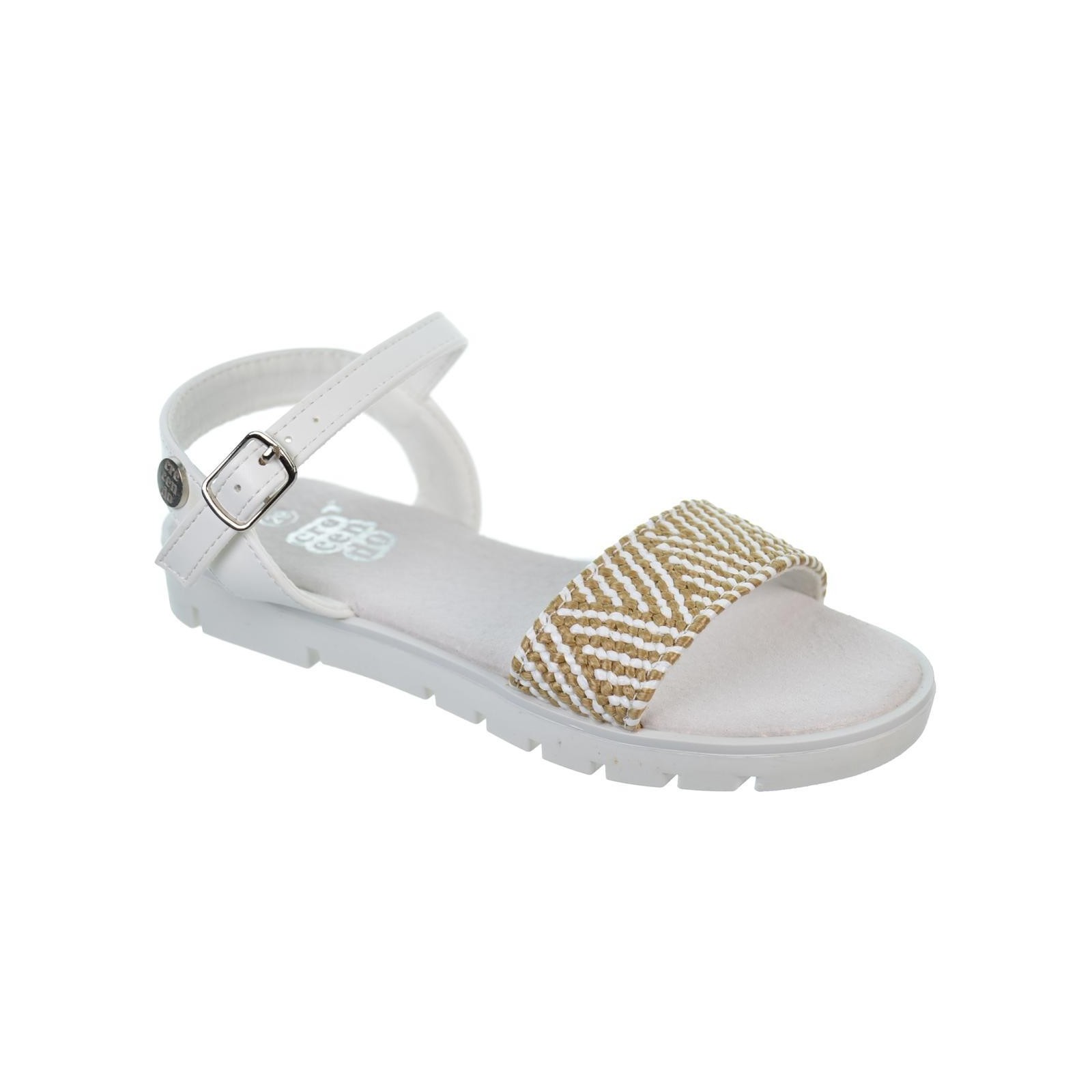 Crecendo 2515. Sandalia sintétic y pala trenzada. Plantilla interior en piel acolchada, muy confortable. Cierre con hebilla regulable y suela goma antideslizante , muy ligero y flexible.Un diseño ideal para combinar con el outfit de tu peque.