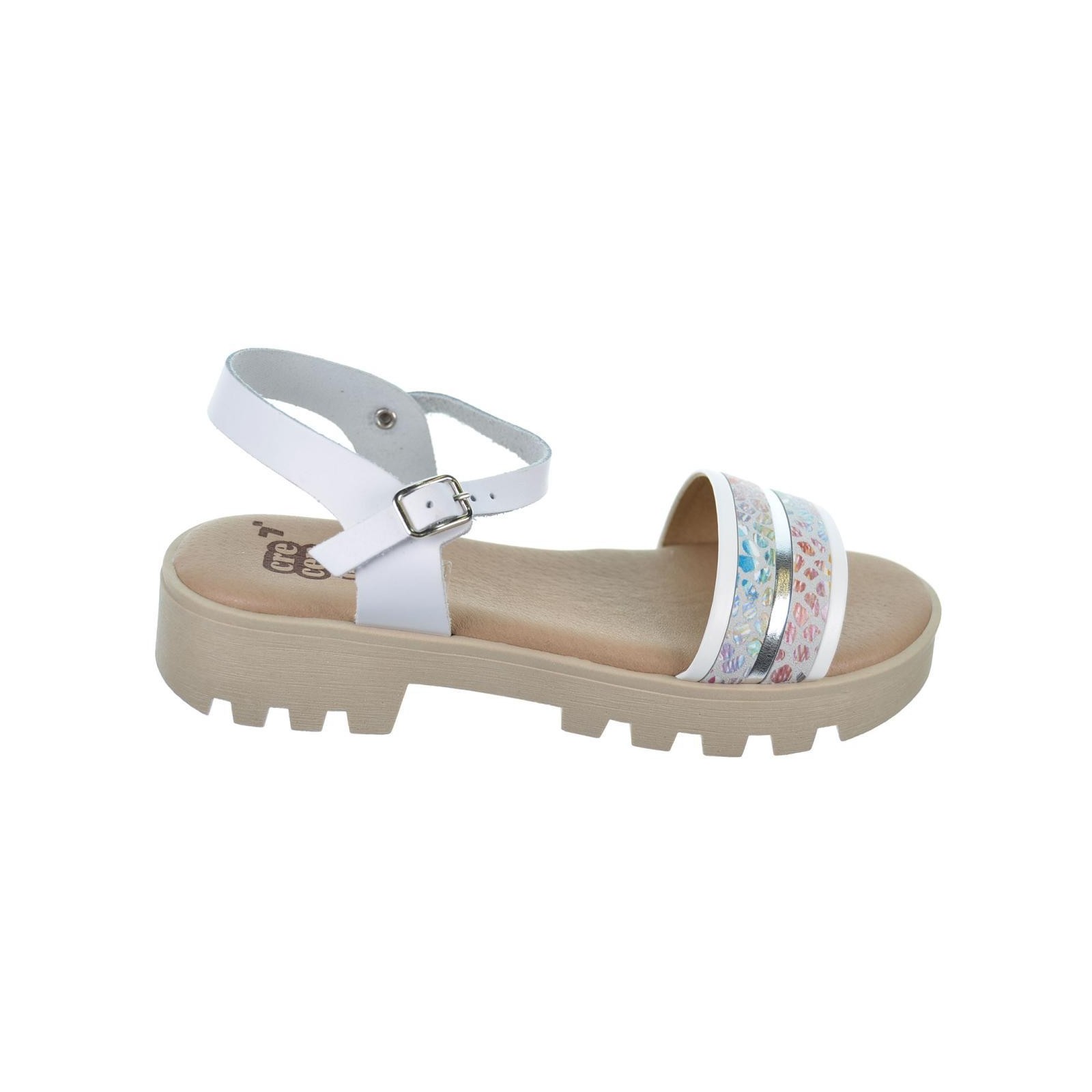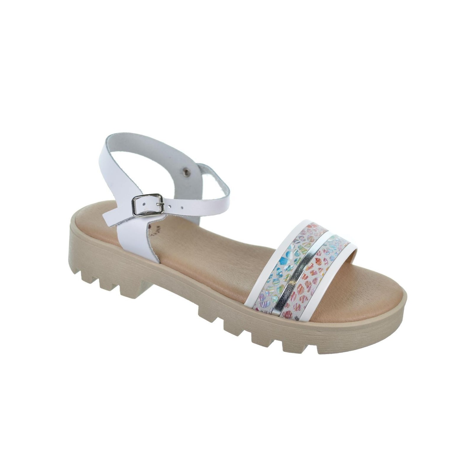 Crecendo 2570 Sandalia en piel con pala fantasía en colores, cierre en pulsera con hebilla regulable y plantilla acolchada de piel. Suela con goma antideslizante.Tus sandalias para este verano.