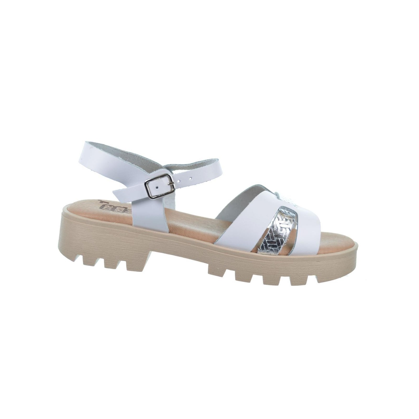 Crecendo 2571 Sandalia en piel y pala combinada en metalizado, cierre de pulsera con hebilla regulable y plantilla de piel. Suela con goma antideslizante.Tus sandalias para este verano.