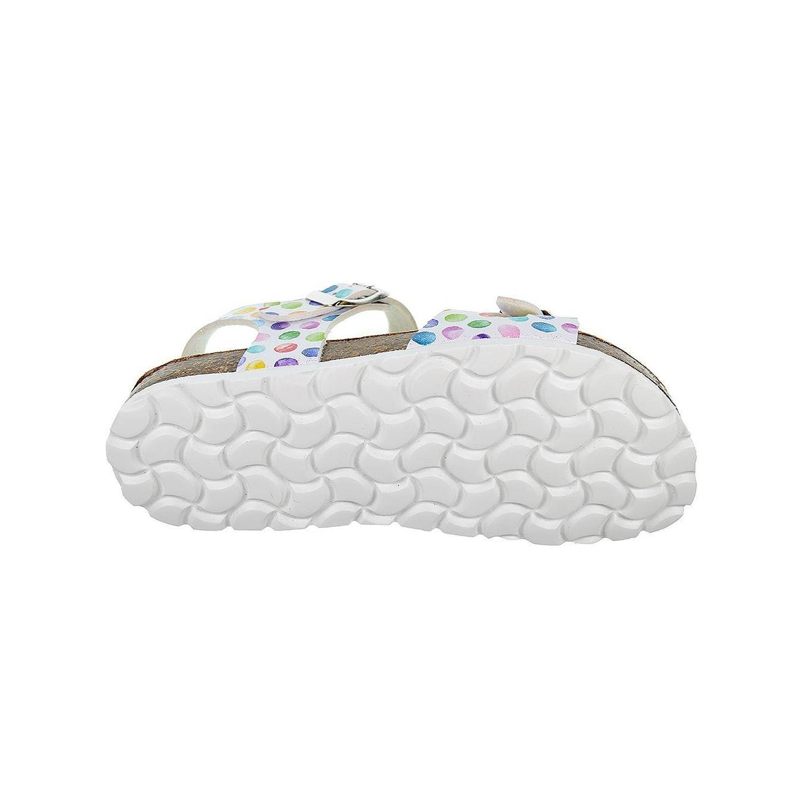 2348 Crecendo Sandalia Bio sintética. Cierre con hebilla en empeine y pulsera regulables. Planta bio en piel serraje y suela de eva termoconformada, muy ligera y flexible. Disfruta con tus sandalias de unicornios más coloridas.