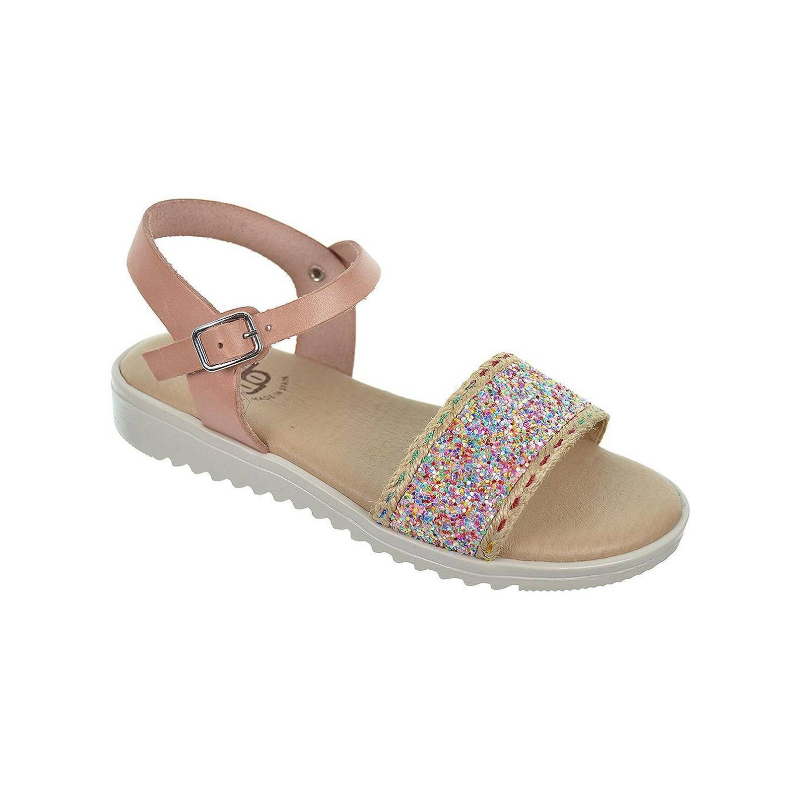2358 Crecendo Sandalia en piel con pala glitter de colores, cierre en pulsera con hebilla regulable y plantilla de piel. Suela con goma antideslizante.Tus sandalias para este verano.