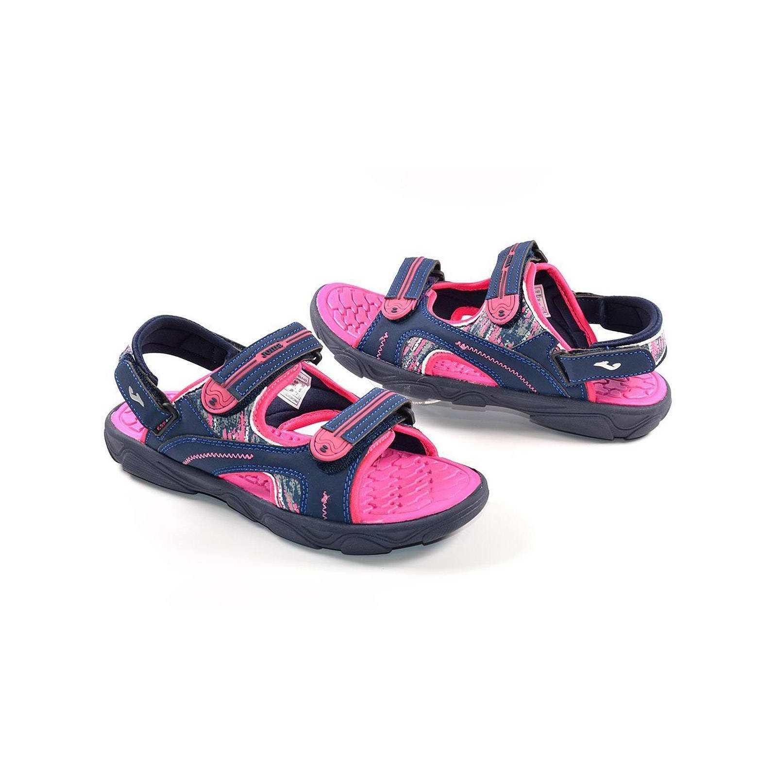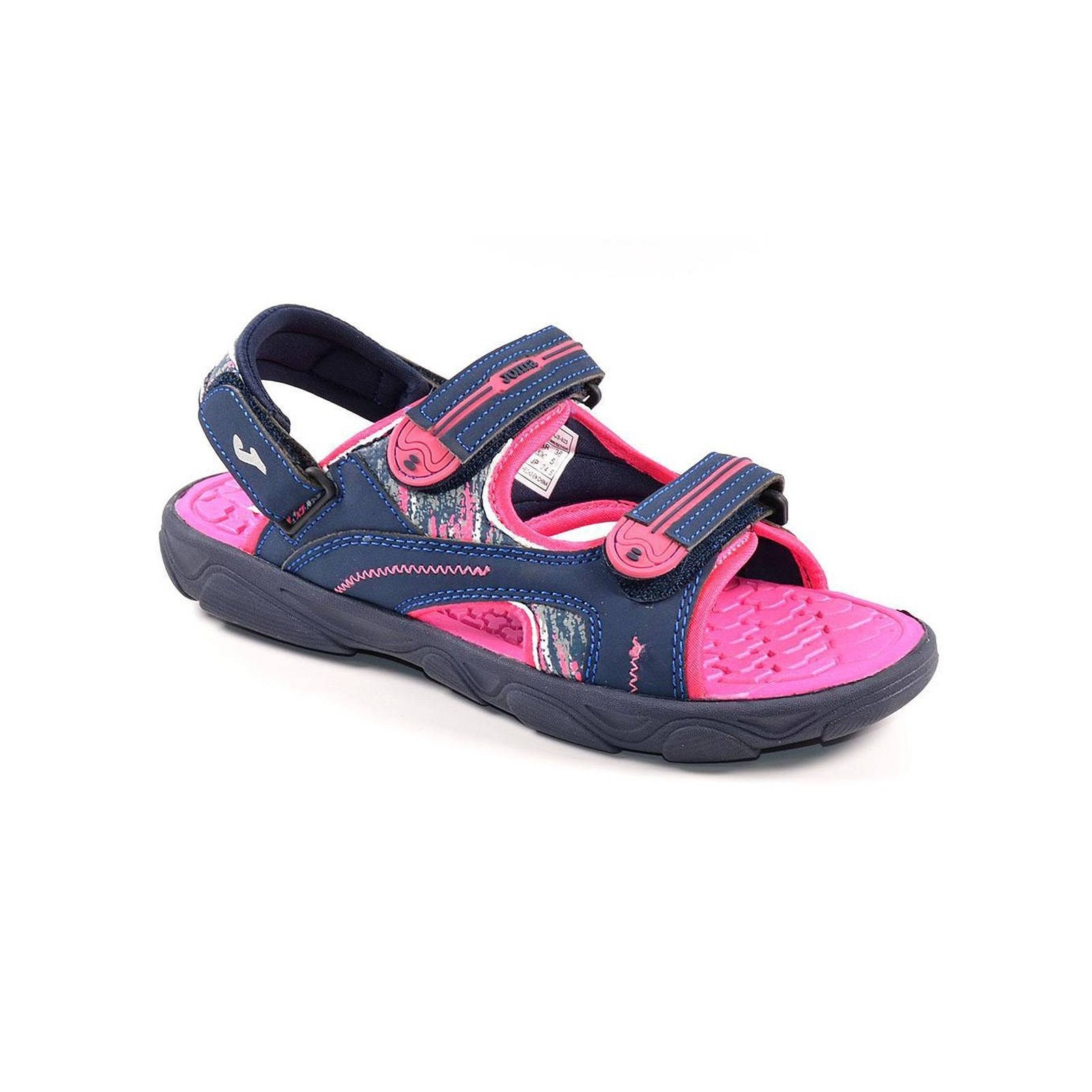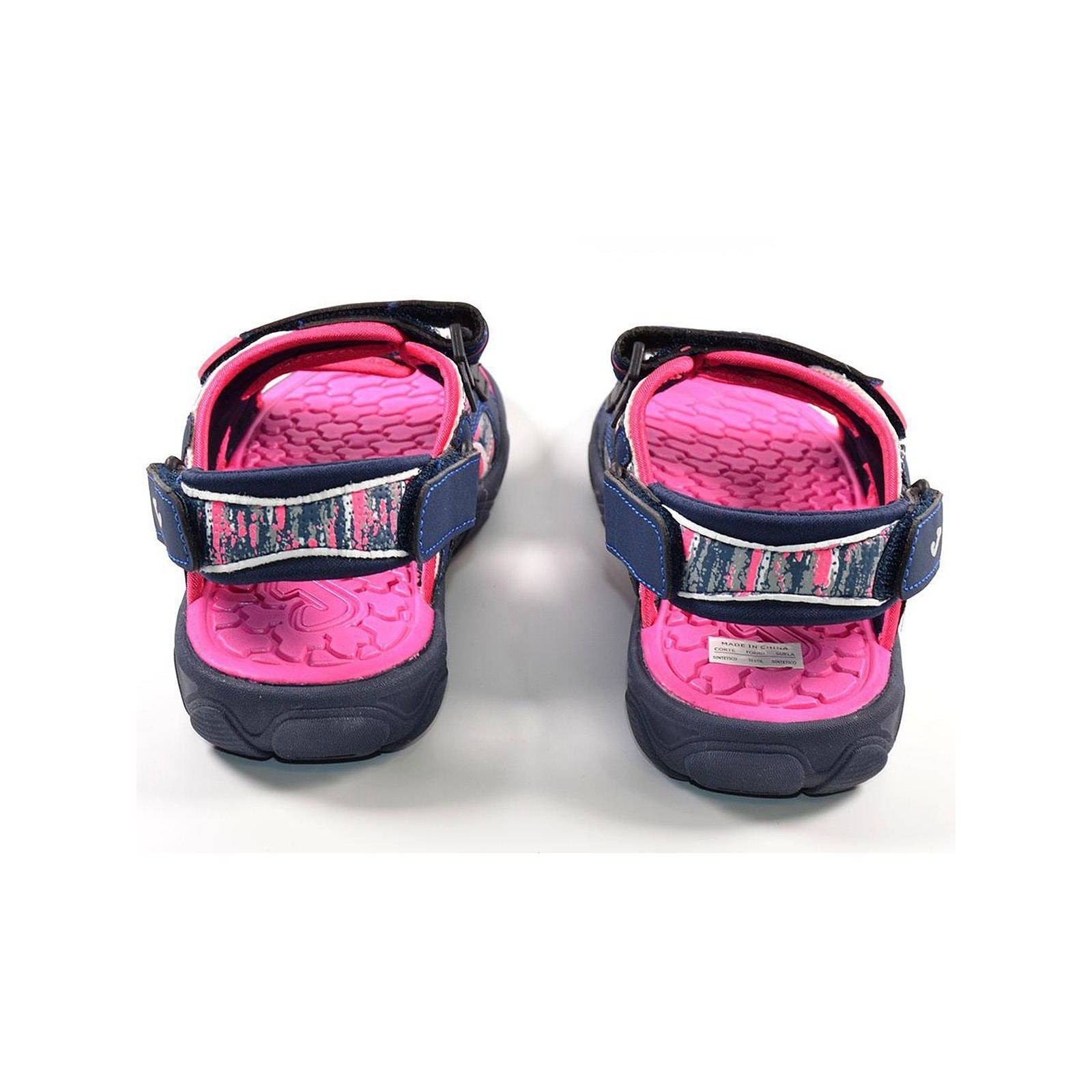 Sandalia material sintético, forrado interior textil acolchado. Cierre con doble velcro en empeine y tira en talón con velcro en interior y exterior, para un ajuste perfecto. Plantilla sintético y piso de caucho.