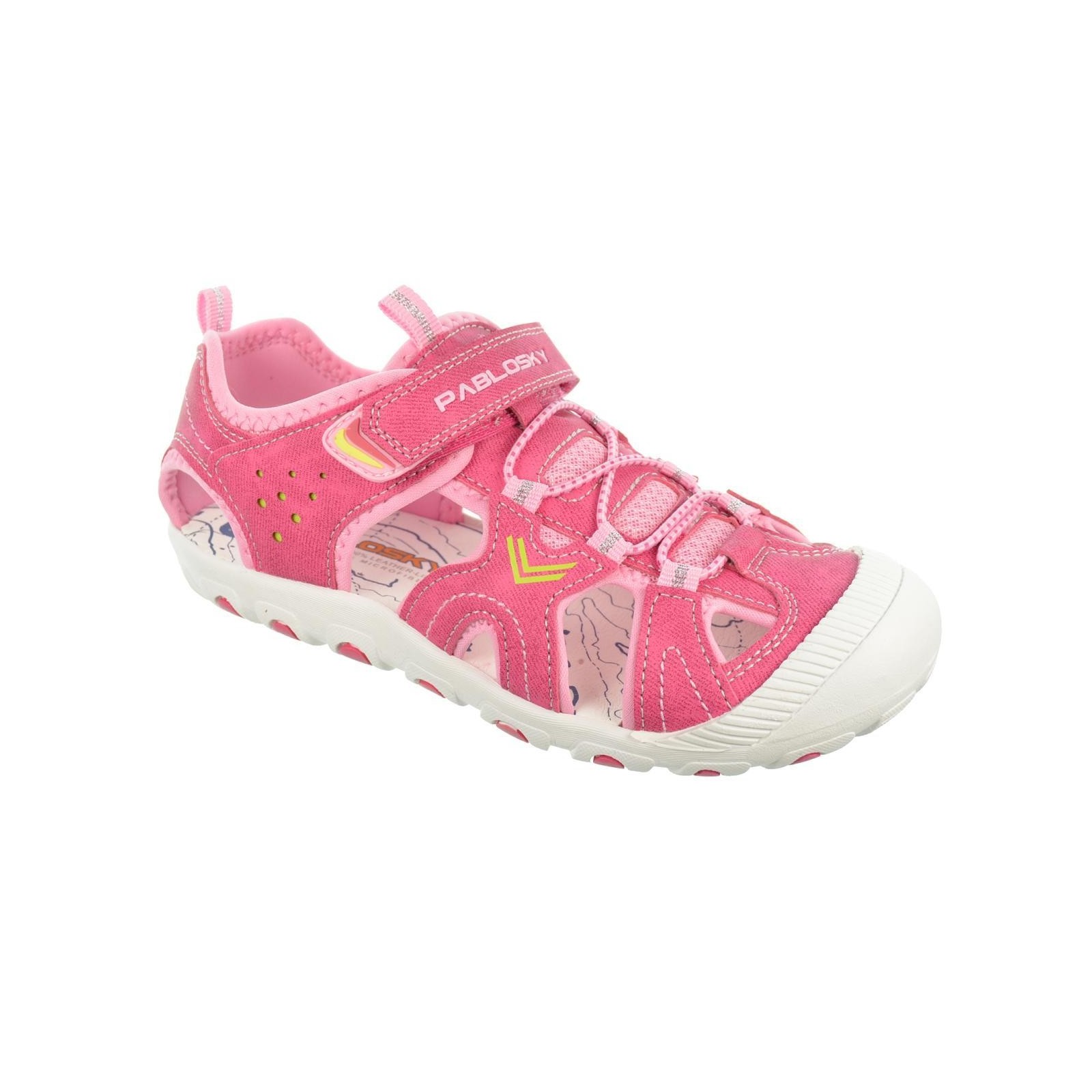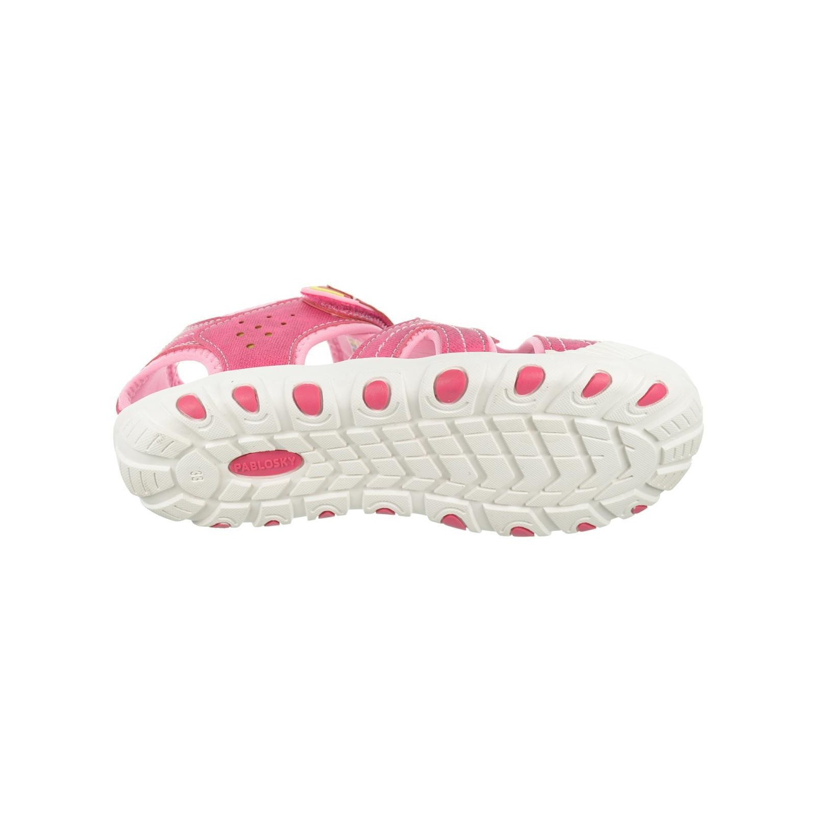 Pablosky 981970. Sandalia en material sintético y textil. Forro interior textil y plantilla en sintético acolchada, máximo confort. Cierre con velcro en empeine, para un ajuste perfecto. Piso de goma antideslizante, muy ligero y flexible.Ya puedes disfrutar de tus aventuras este verano.