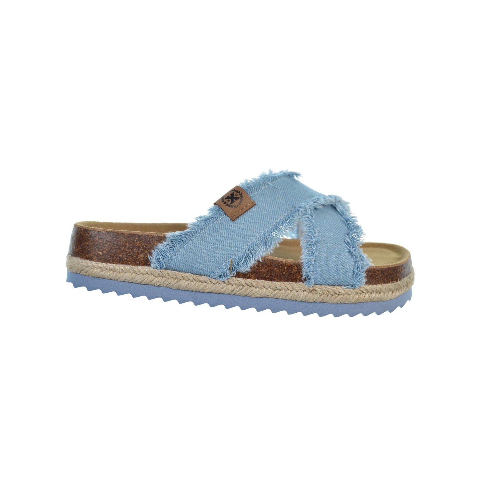 Xti Kids 150885 Sandalia en textil vaquero con tiras cruzadas. Planta de bio en textil con revirado en yute y suela de Eva termoconformada. Ideal para combinar con los look mas atrevidos de este verano.