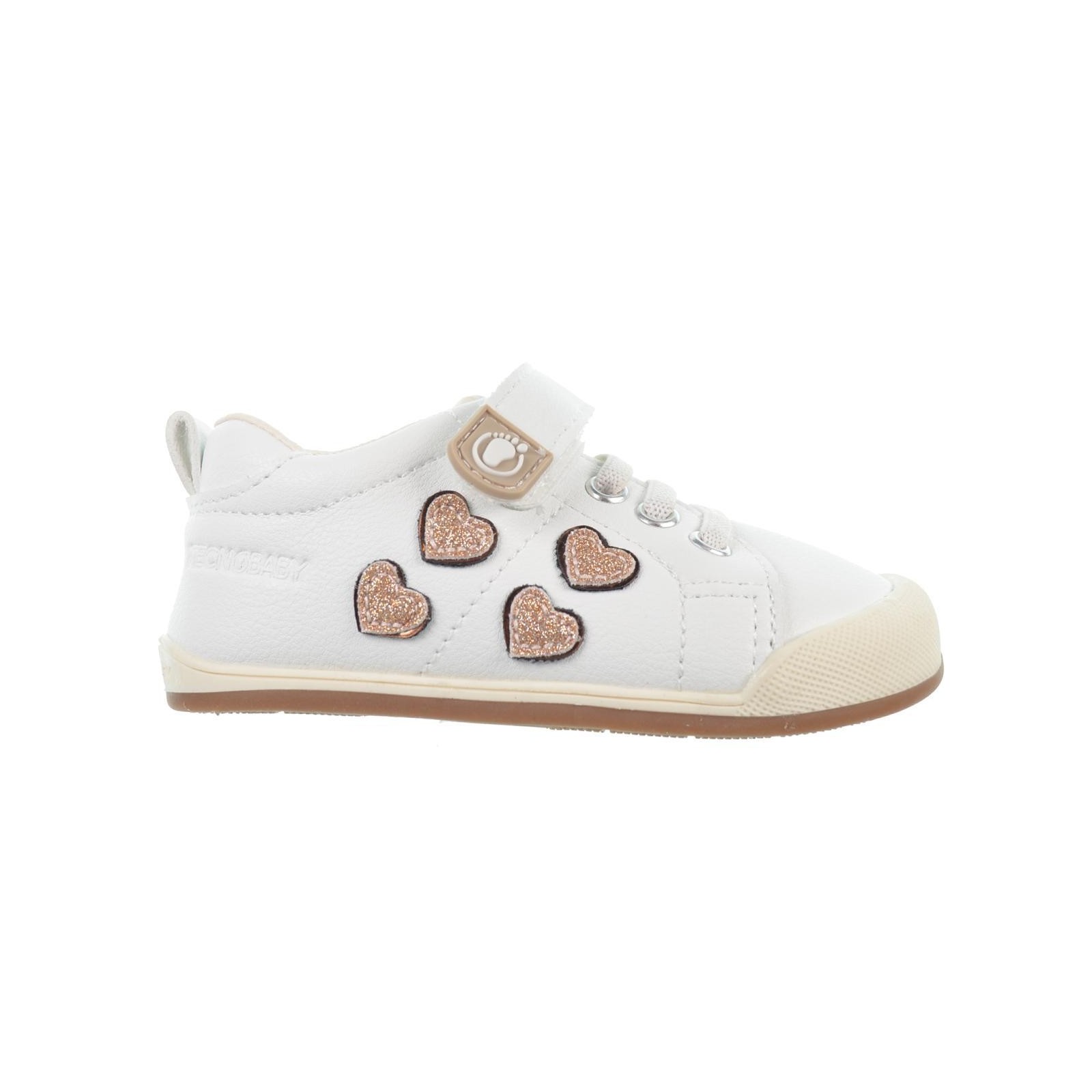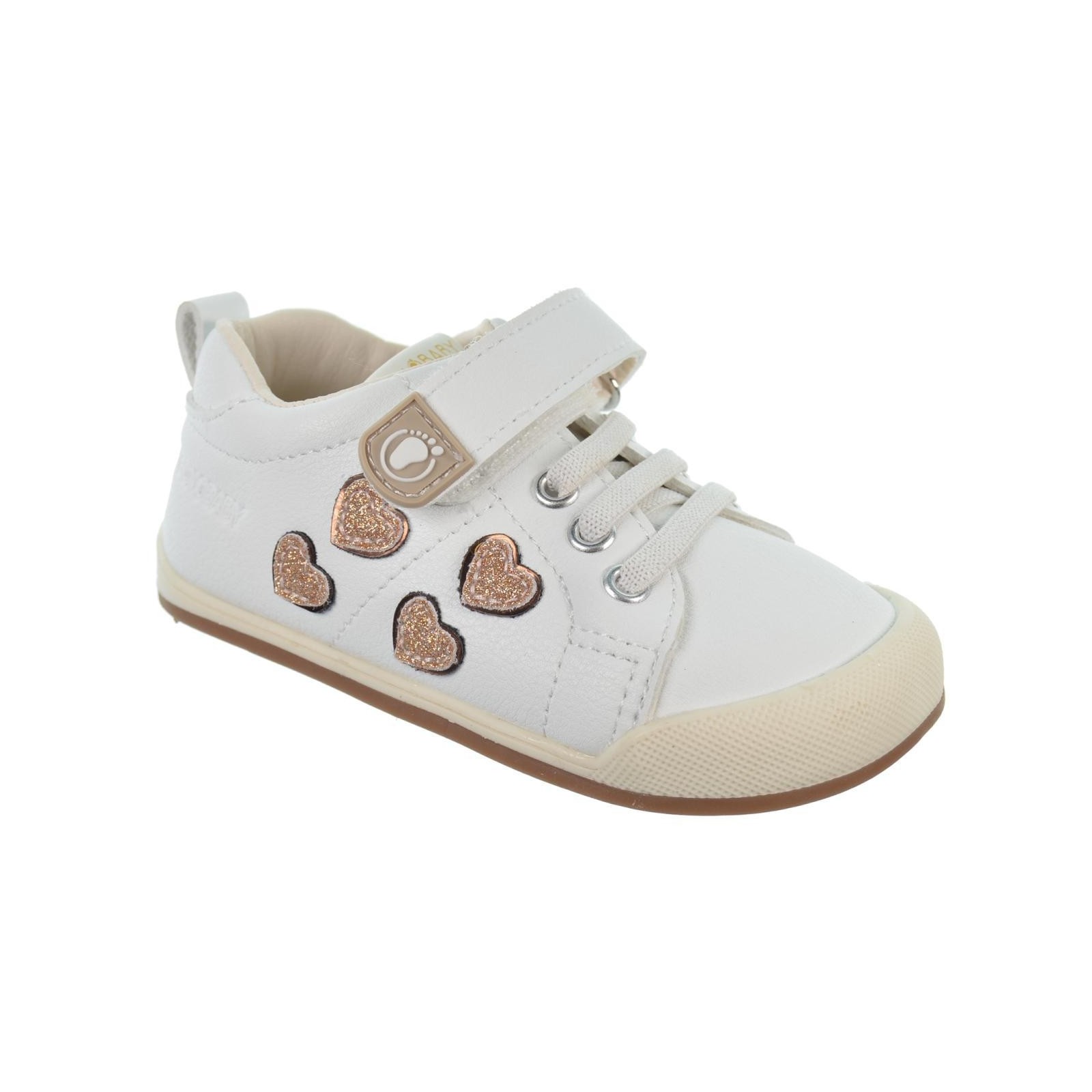 Conguitos Tecnobaby 516010 Zapato Respetuoso en sintético con adornos en forma de corazón en Glitter. Cierre en cordones elásticos y velcro, para un ajuste perfecto y plantilla extraíble en sintético. Suela y puntera de goma antideslizante, muy flexible. El calzado Barefoot proporciona una experiencia más natural al caminar y permite que los pies se muevan de manera más libre y flexible.