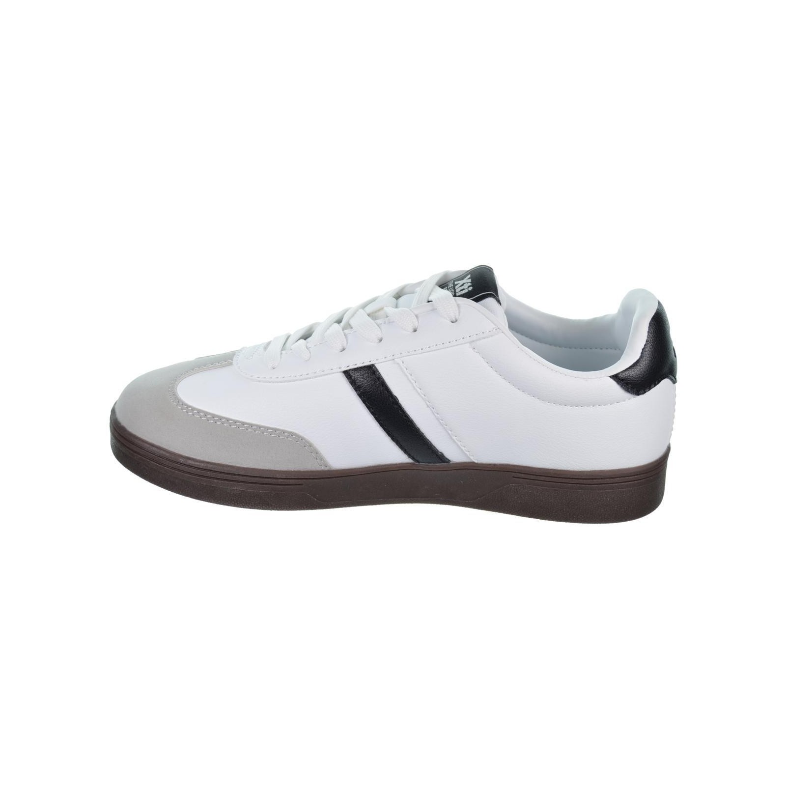 en material que imita la piel. Cierre de cordones regulables para un mayor ajuste. Forro interior sintético y plantilla extraíble textil acolchada. Suela de goma antideslizante. Este modelo ha obtenido el certificado vegano por la organización mundial PETA (Organización de los derechos de los animales).