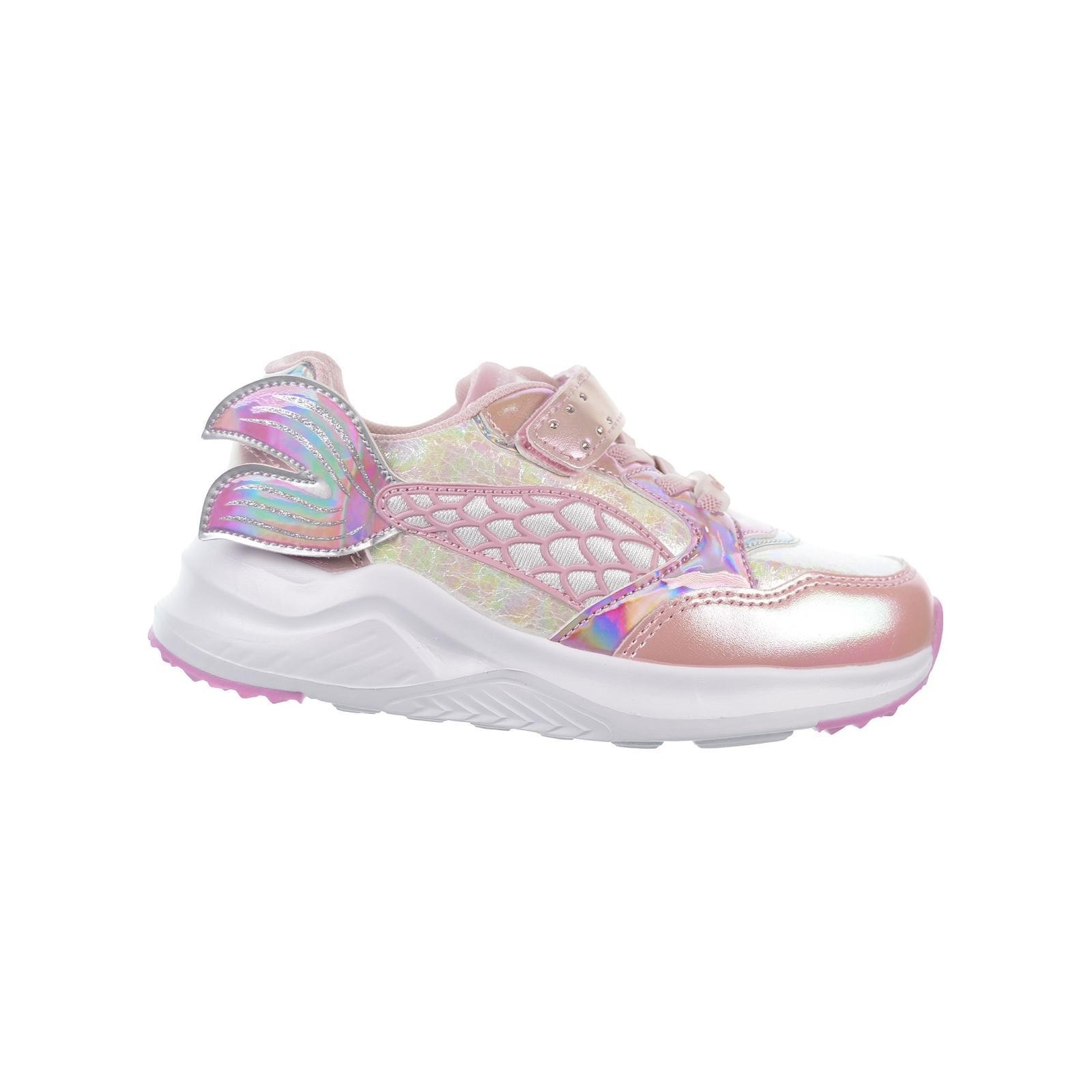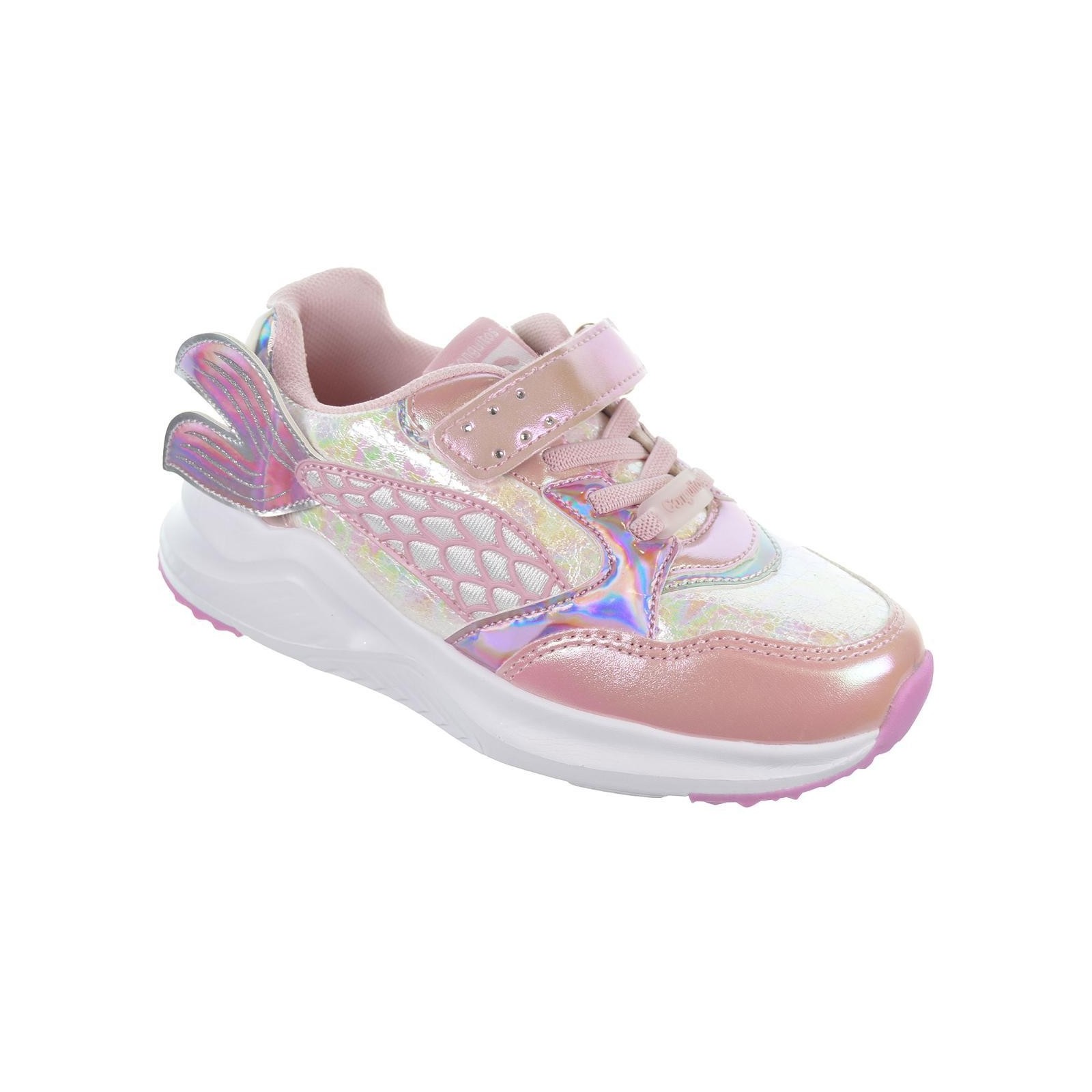 Conguitos 261017. Deportivo Sirenita en textil y sintético con fantasía. Iluminación en el lateral con cada pisada. Forro textil acolchado. Cierre en cordones elásticos y velcro ajustables. Piso de eva termoconformada muy ligero y flexible.Los deportivos con los que tu peque brillará.