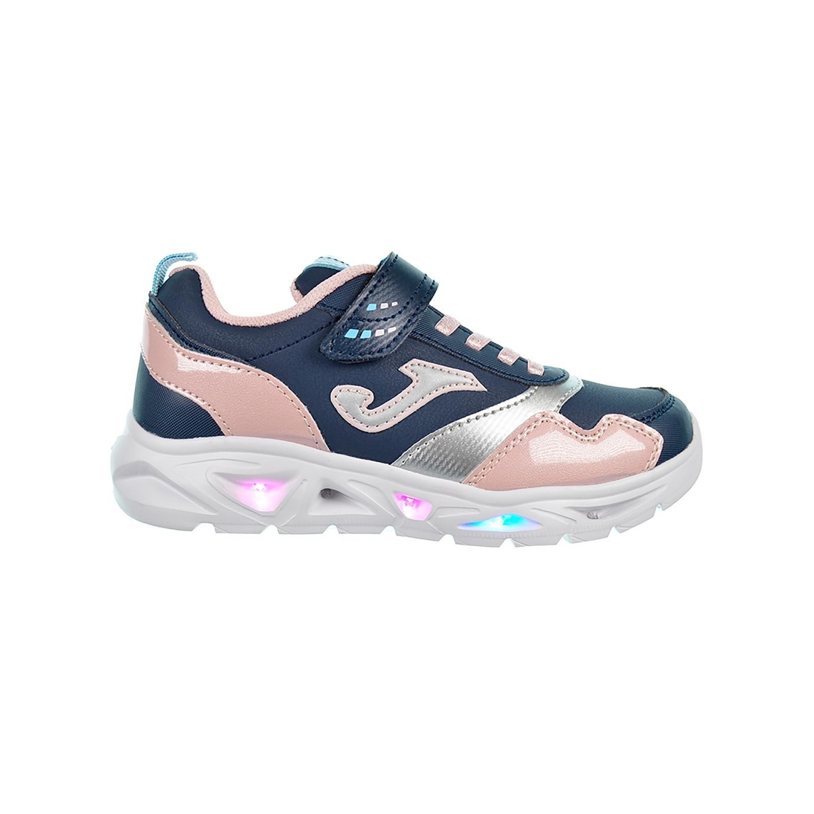 Joma Jstarw2503 Deportivo en sintético, forro interior y plantilla en textil, cierre con velcro y cordones elásticos para un ajuste perfecto. Piso eva termoconformada con luces, muy ligero y flexible. Los deportivos con los que tu peque se iluminará.
