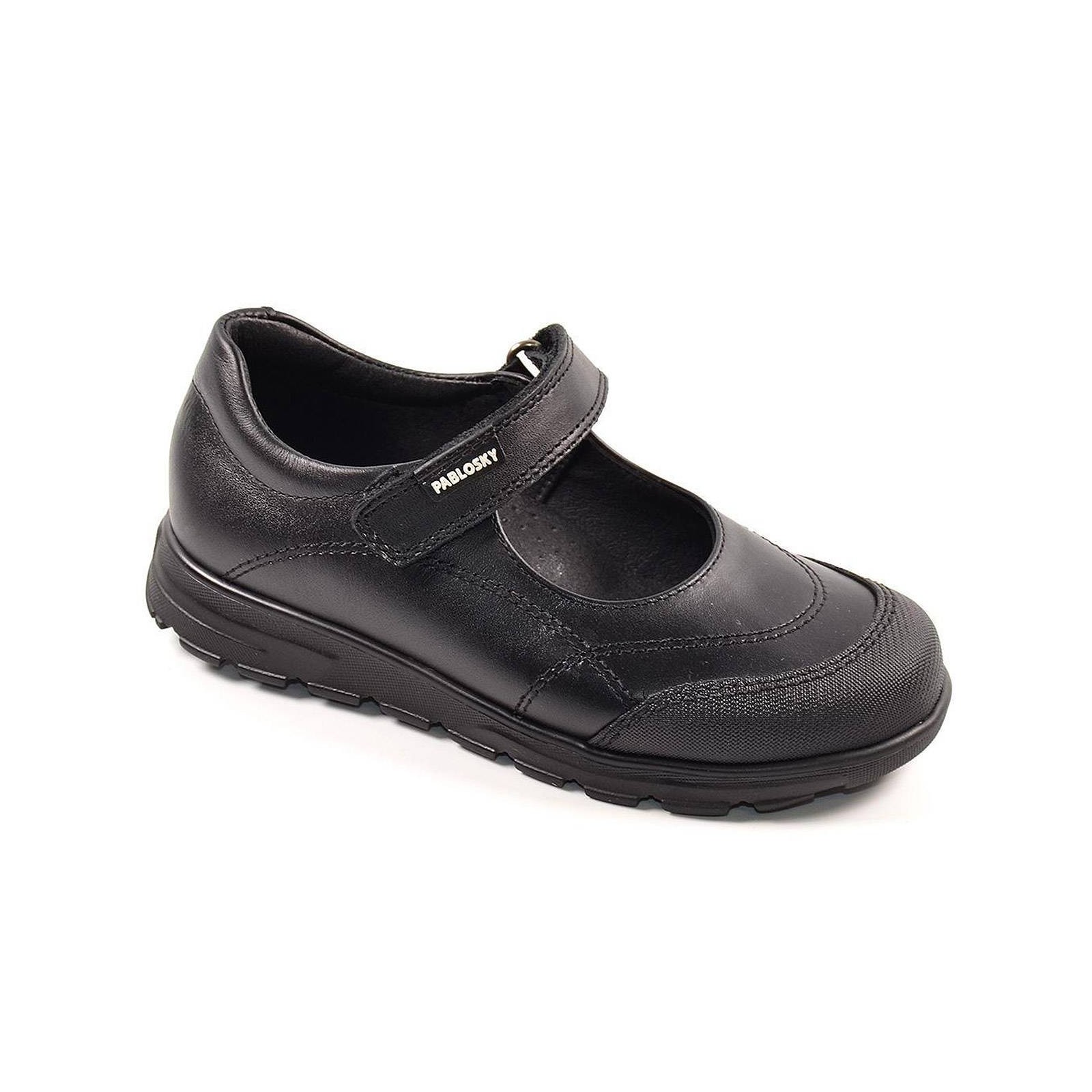 334210 Pablosky. Zapato colegial en material de piel y puntera reforzada. Forro interior y plantilla textil inTech transpirable. Cierre en velcro ajustable. Piso de goma antideslizante, muy flexible. Ideales para el cole, por su resistencia y durabilidad.
