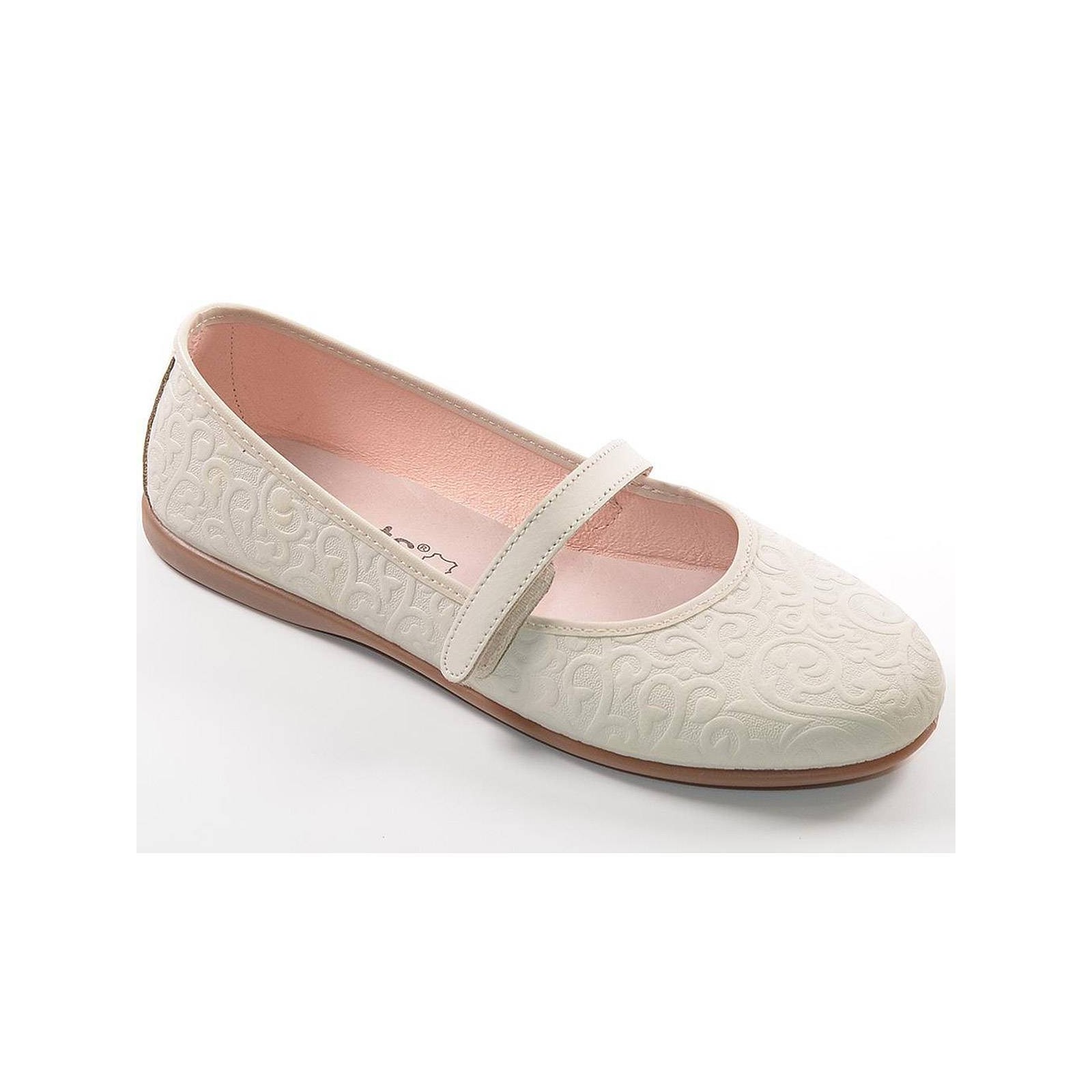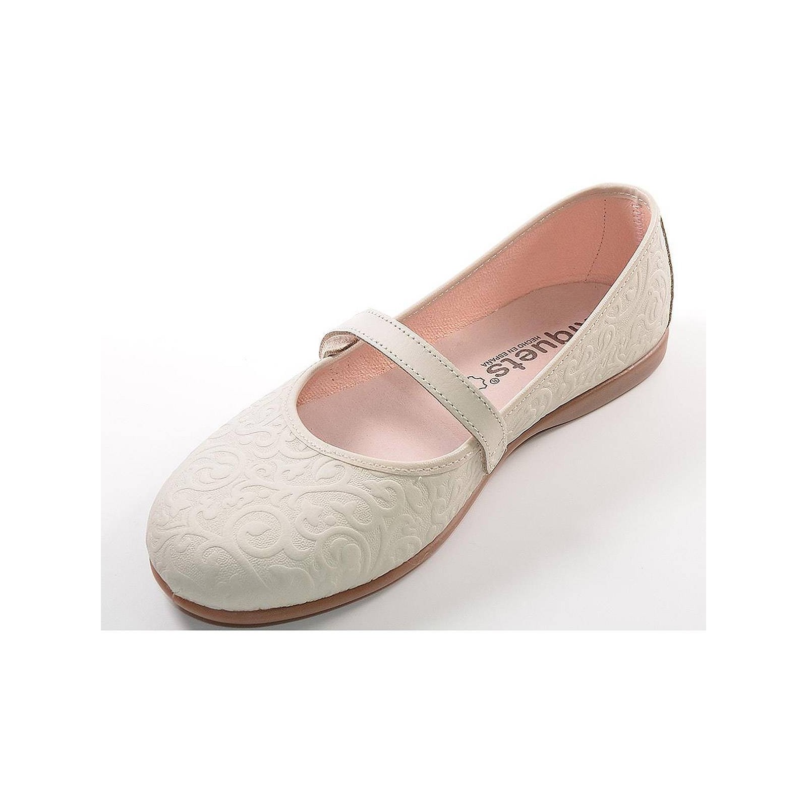 70428 XIQUETS. Zapato en material de piel con un grabado muy original, cierre en velcro y plantilla en piel acolchada. Piso de goma antideslizante, muy flexible.Ideales para combinar con tus vestidos en eventos o ceremonias.
