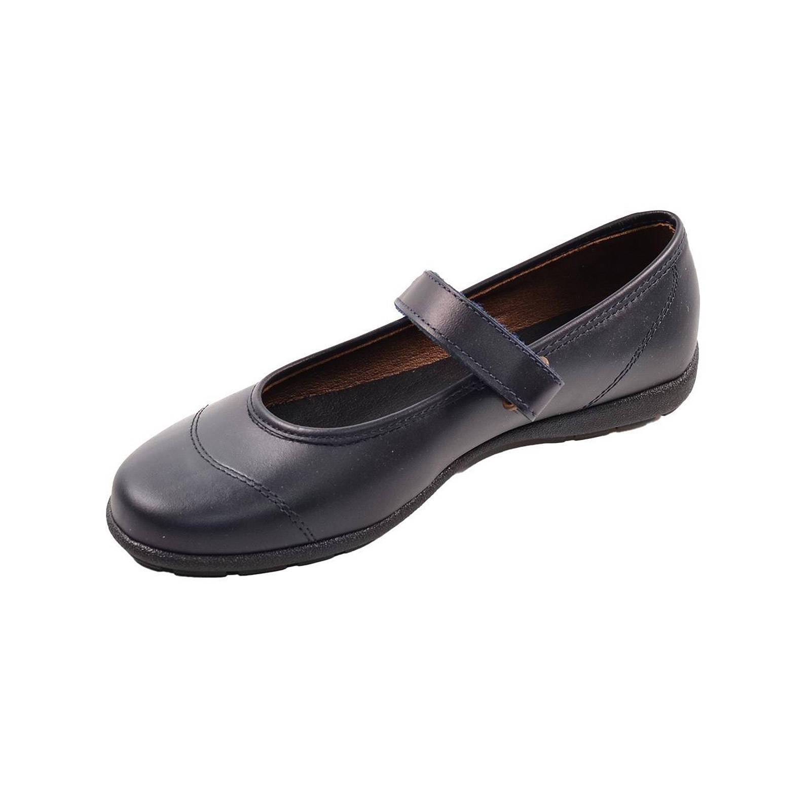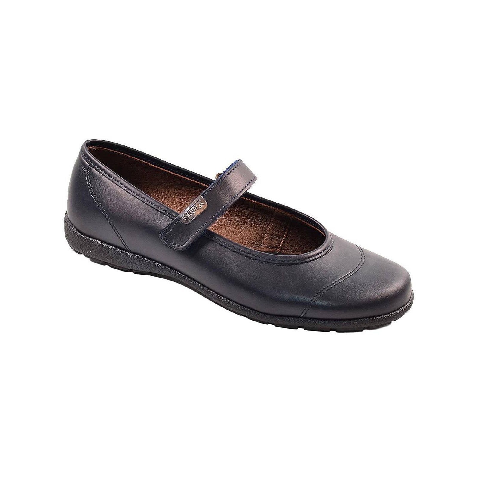 803020 PAOLA. Zapato colegial en material de piel y puntera reforzada. Forro interior y plantilla en piel. Cierre en velcro ajustable. Piso de goma antideslizante, muy flexible. Ideales para el cole, por su resistencia y durabilidad.