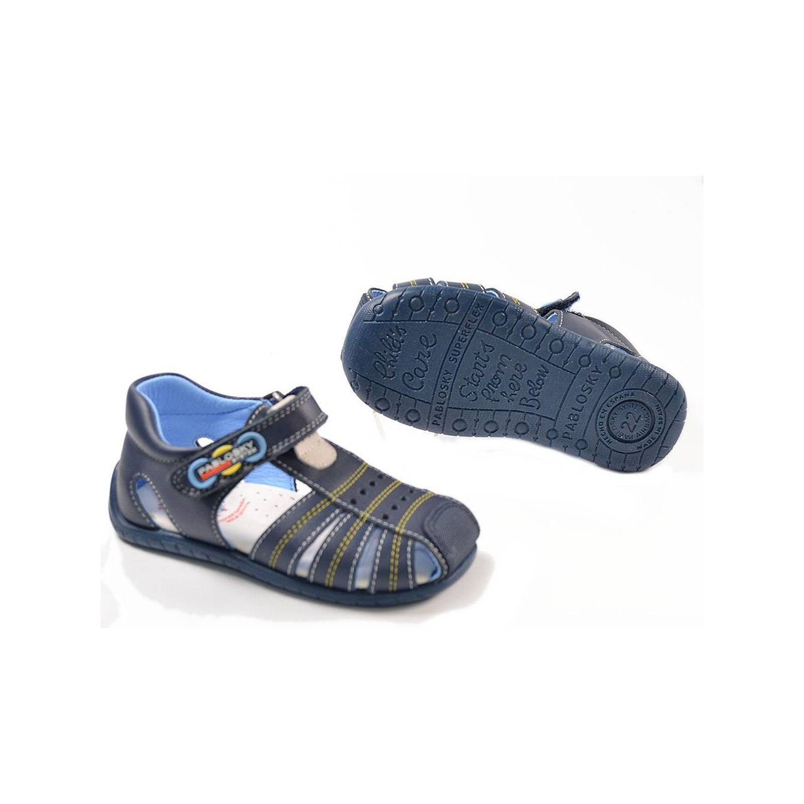 090922 pablosky. Sandalia material piel. Puntera y talón reforzado, con velcro ajustable. Plantilla acolchada absorbente y antibacterias. Piso de goma antideslizante, muy flexible. Marca especializada en calzado para niño. Sandalias ideales para los primeros pasos.