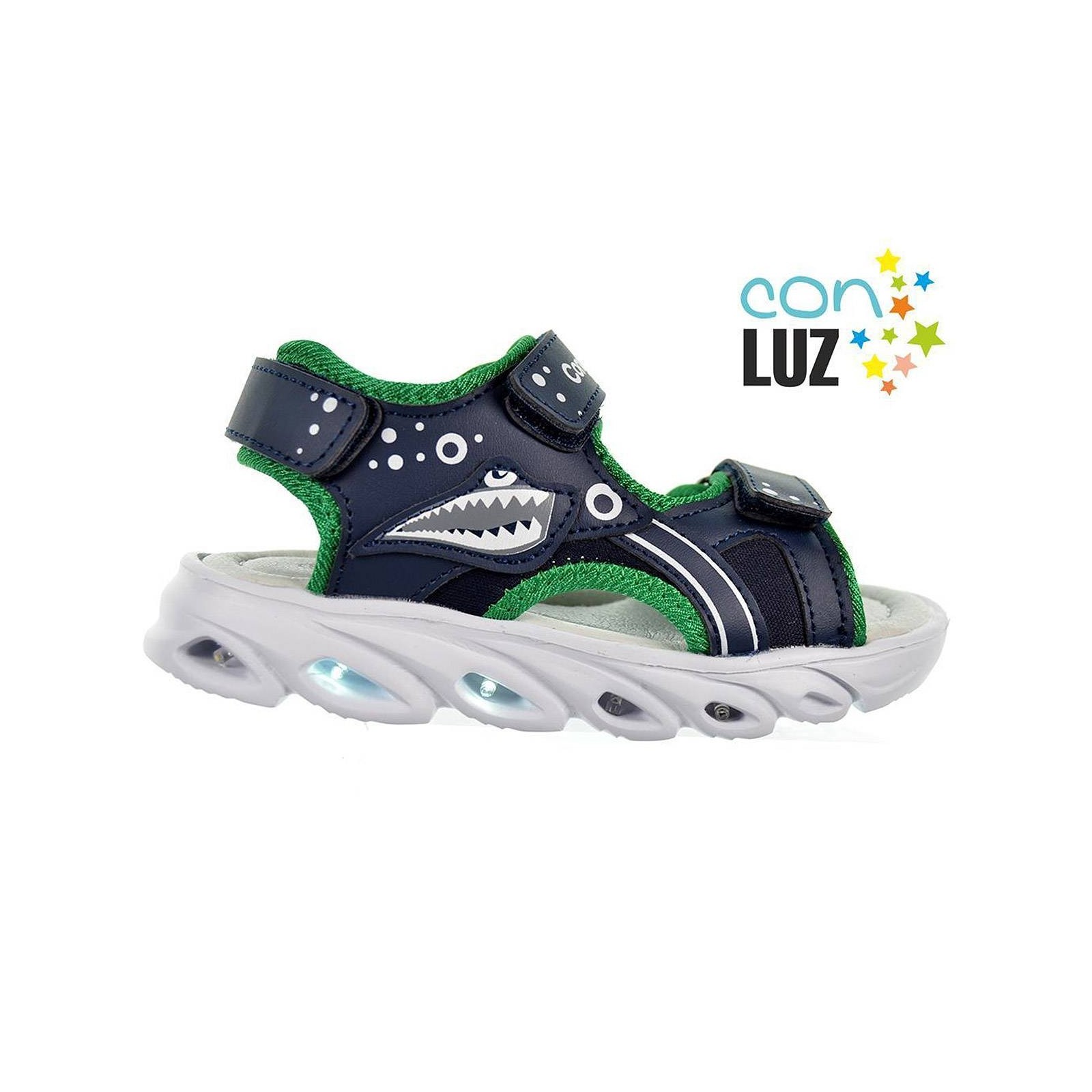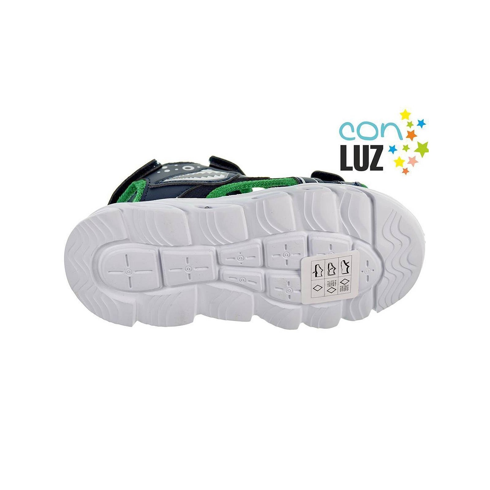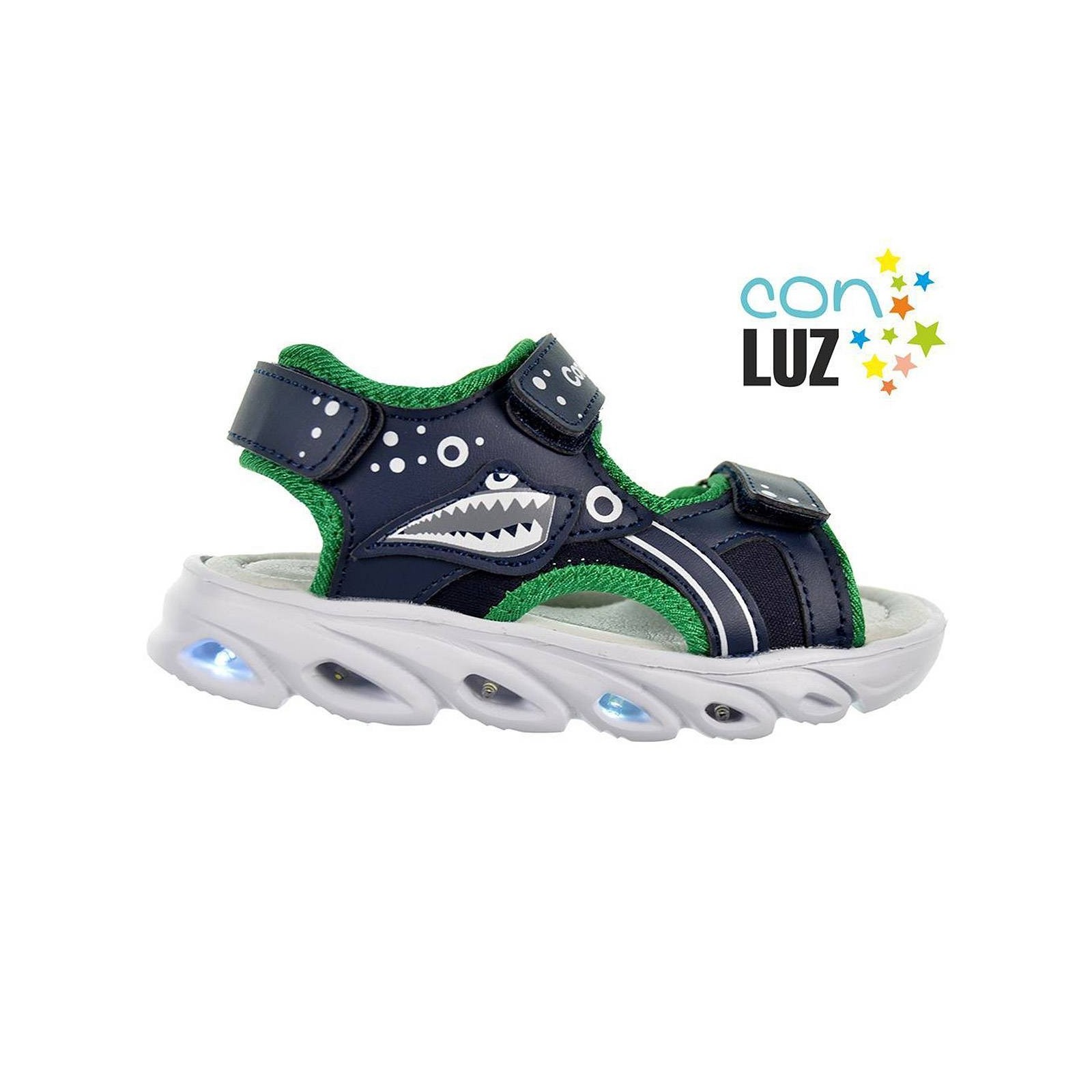 126002 Conguitos. Sandalia en sintético. Forrado interior en textil y plantilla acolchada. Cierre con doble velcro regulable en empeine y en talón. Piso de goma muy flexible. Ya puedes disfrutar con tus sandalias que te iluminarán a cada paso.