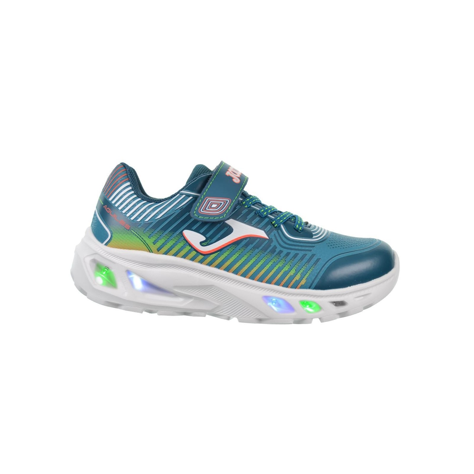 Joma Aquilesjr2417. Deportivo luces en textil y sintético, forro interior y plantilla en textil acolchado, cierre con velcro y cordones elásticos para un ajuste perfecto. Piso eva termoconformada con luces, muy ligero y flexible. Los deportivos con los que tu peque se iluminara.