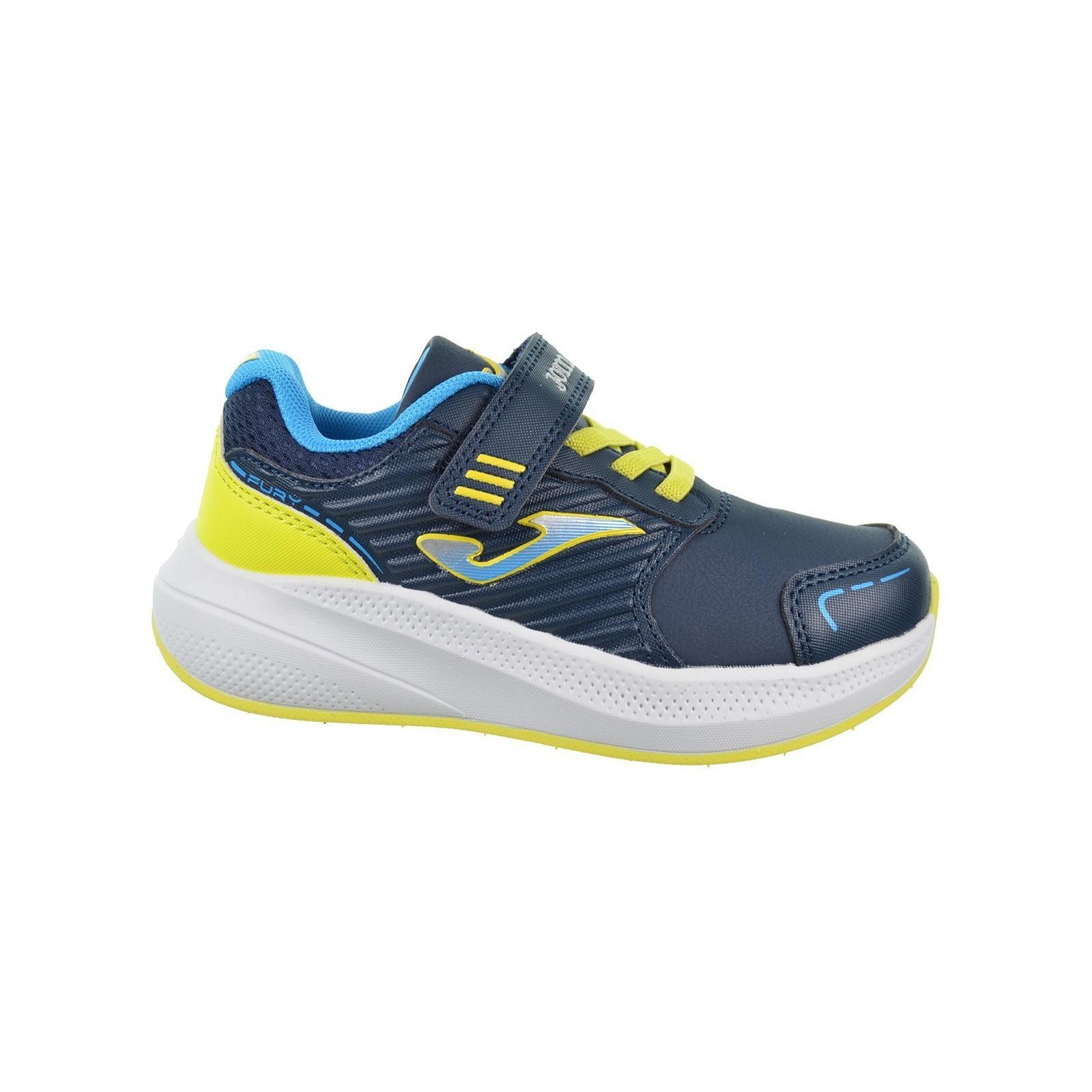 Joma Furyjr2403 Deportivo sintético, forro interior y plantilla textil acolchado. Cierre en cordones elásticos y velcro para un ajuste perfecto. Piso de Eva Termoconformada y suela de goma antideslizante, muy ligera y flexible.Un deportivo muy cómodo y versátil para tu día a día.