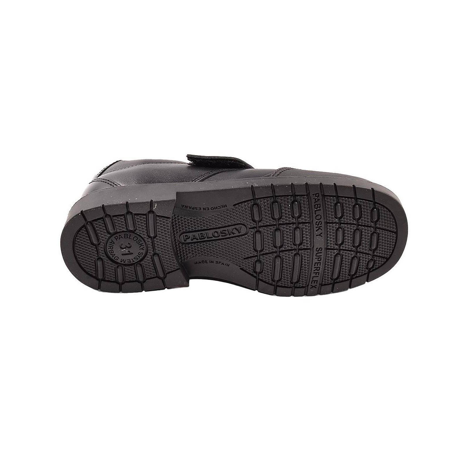 791710 Pablosky. Zapato colegial en material de piel y puntera reforzada. Forro interior y plantilla textil inTech transpirable. Cierre en velcro ajustable. Piso de goma antideslizante, muy flexible. Ideales para el cole, por su resistencia y durabilidad.