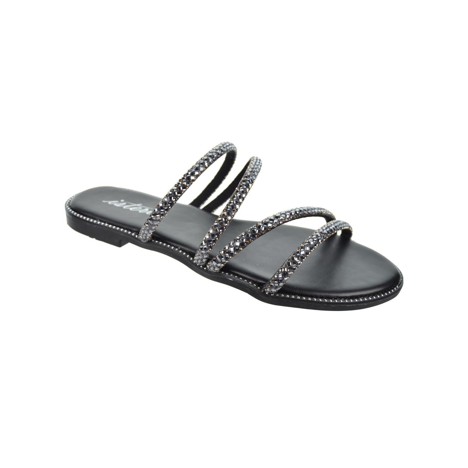 Isteria 24117 Sandalia destalonada fantasía imitación diamantes. Plantilla acolchada muy confortable y piso de goma antideslizante.Tus sandalia elegantes a todo confort.