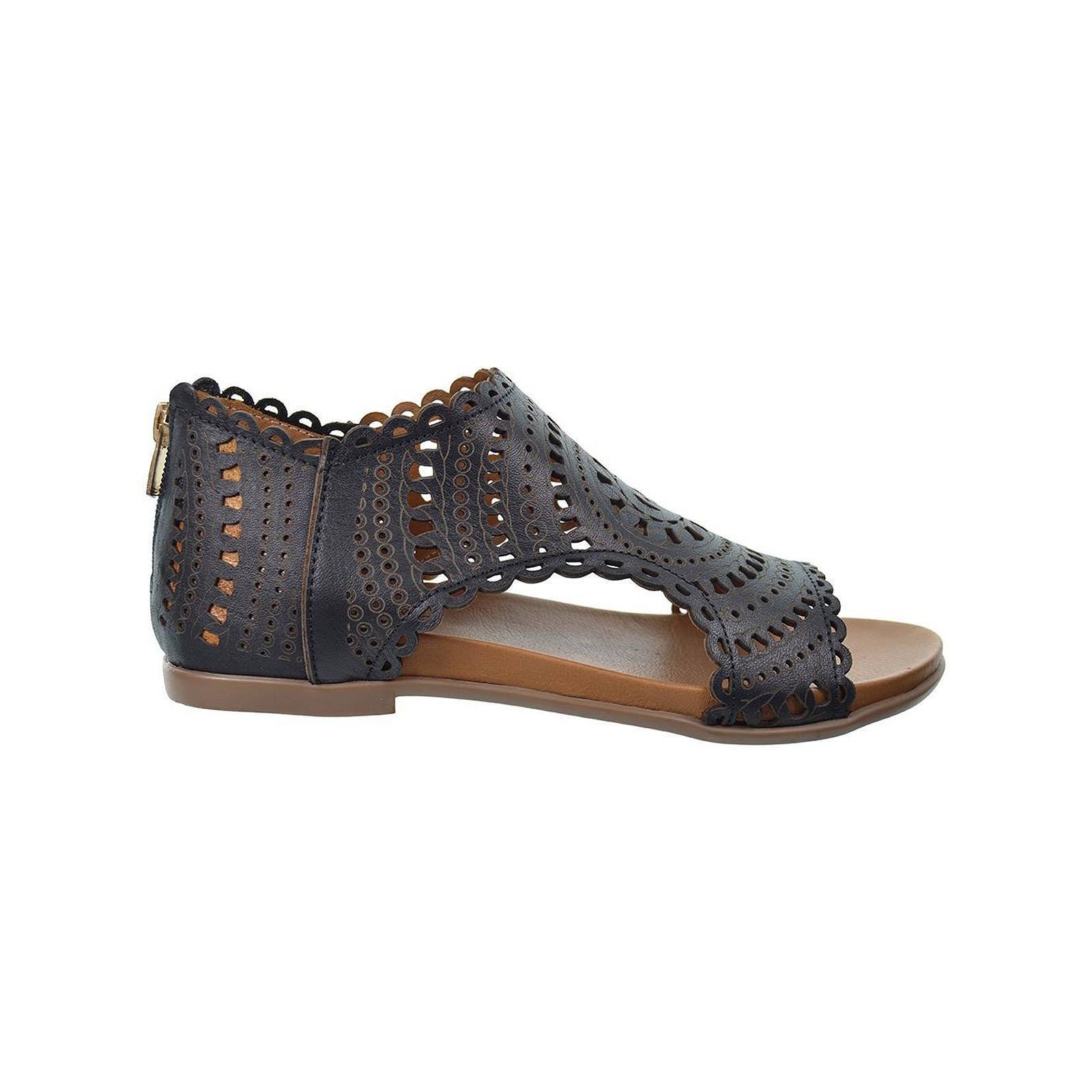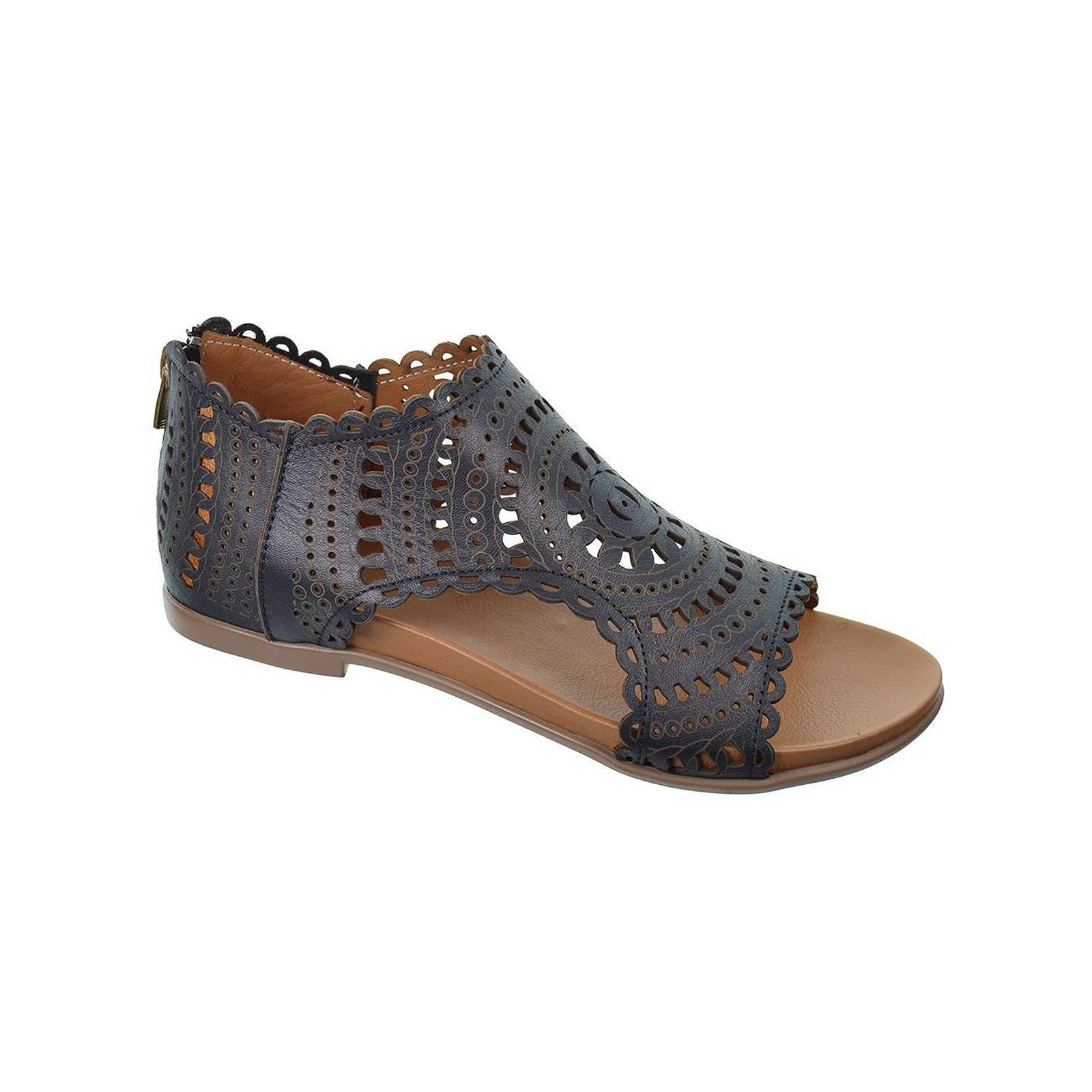 23495 Top3 Sandalia piel perforada, cierre en talón con cremallera y planta muy confortable. Piso de goma muy flexible antideslizante. Tus sandalias de moda para este verano.
