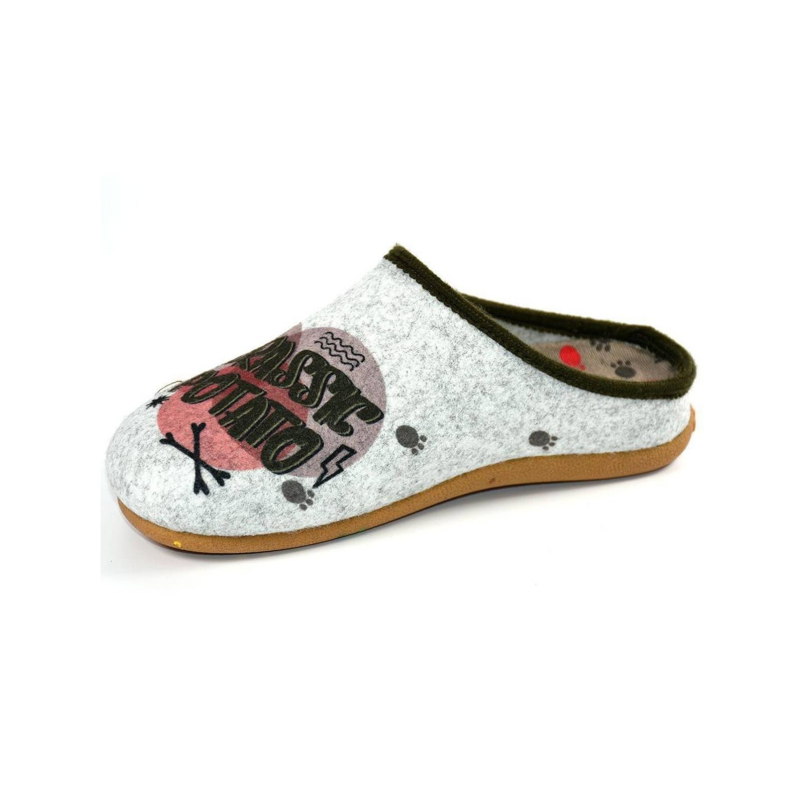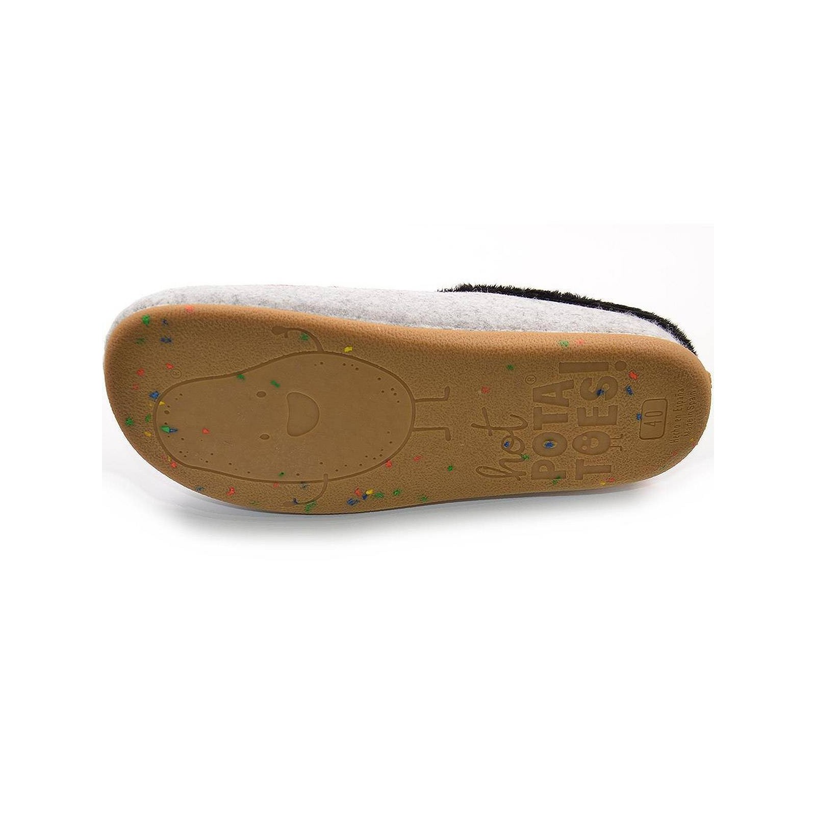 EFERDING hot POTATOES!. Zapatillas de estar por casa tipo babucha, corte estampado de fieltro PET reciclado y planta afelpada de tejido poliéster suave. Plantilla extraíble de espuma poliuretano 100% reciclado y suela de caucho natural. Diseñadas para los pies más divertidos y atrevidos.